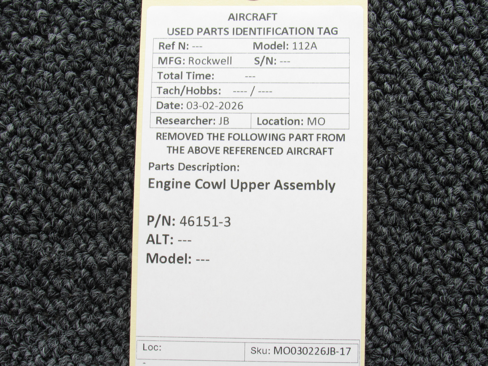 Every part is carefully inspected throughout our process and several times before it goes online. Most items are sold as-removed, just as they came off the aircraft. These parts are not functionally tested. What we do provide is clear photos, full traceability when available, pricing that reflects the as-removed condition, and a no-nonsense 90-day return window.