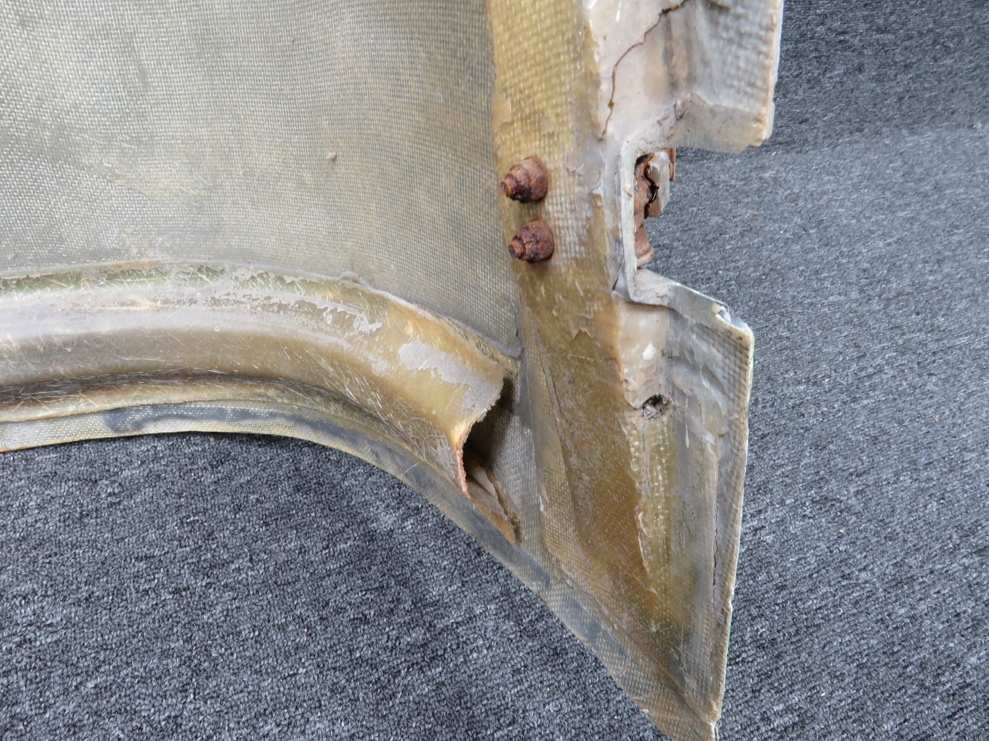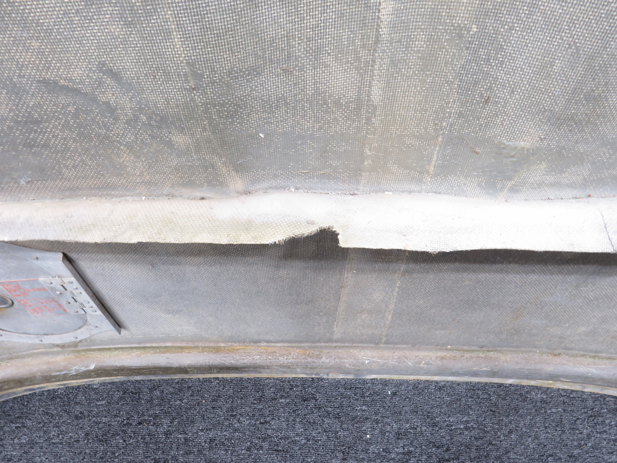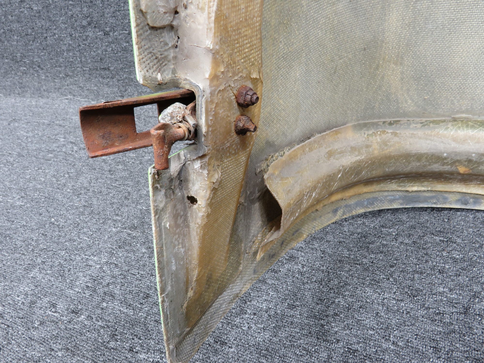 - Damaged fiberglass on forward nose bowl