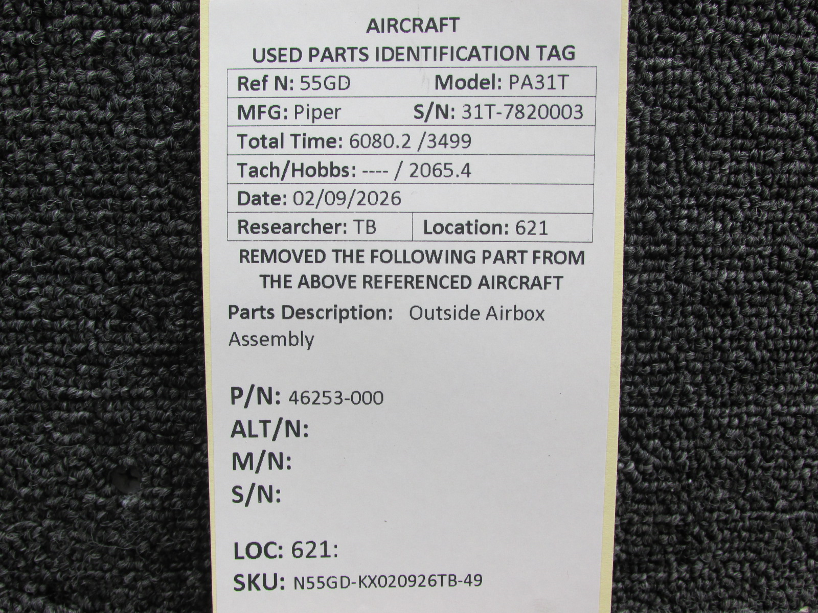 Unless specifically noted, most of our used airplane parts are sold in the condition they were removed, which means you should expect the usual signs of wear and tear.