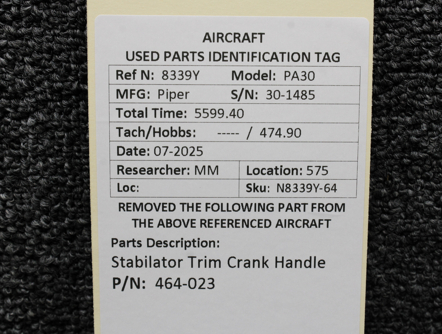 Unless specifically noted, most of our used airplane parts are sold in the condition they were removed, which means you should expect the usual signs of wear and tear.