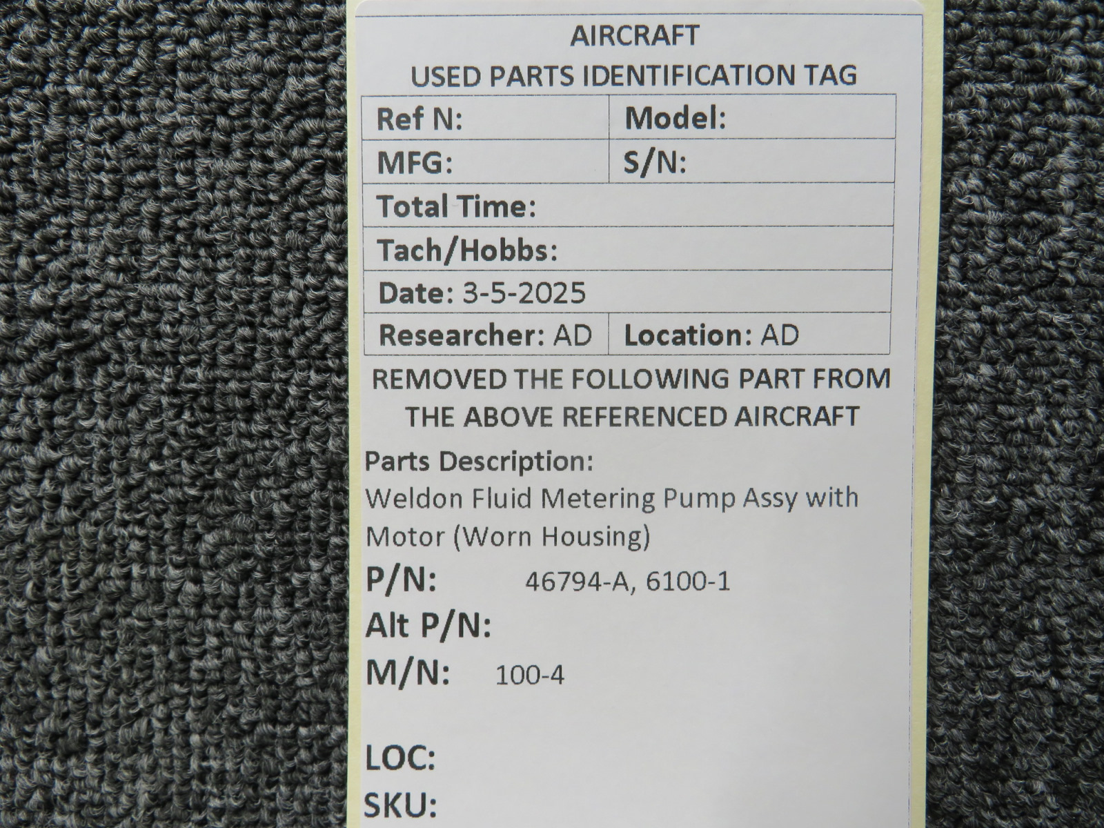 Unless specifically noted, most of our used airplane parts are sold in the condition they were removed, which means you should expect the usual signs of wear and tear.