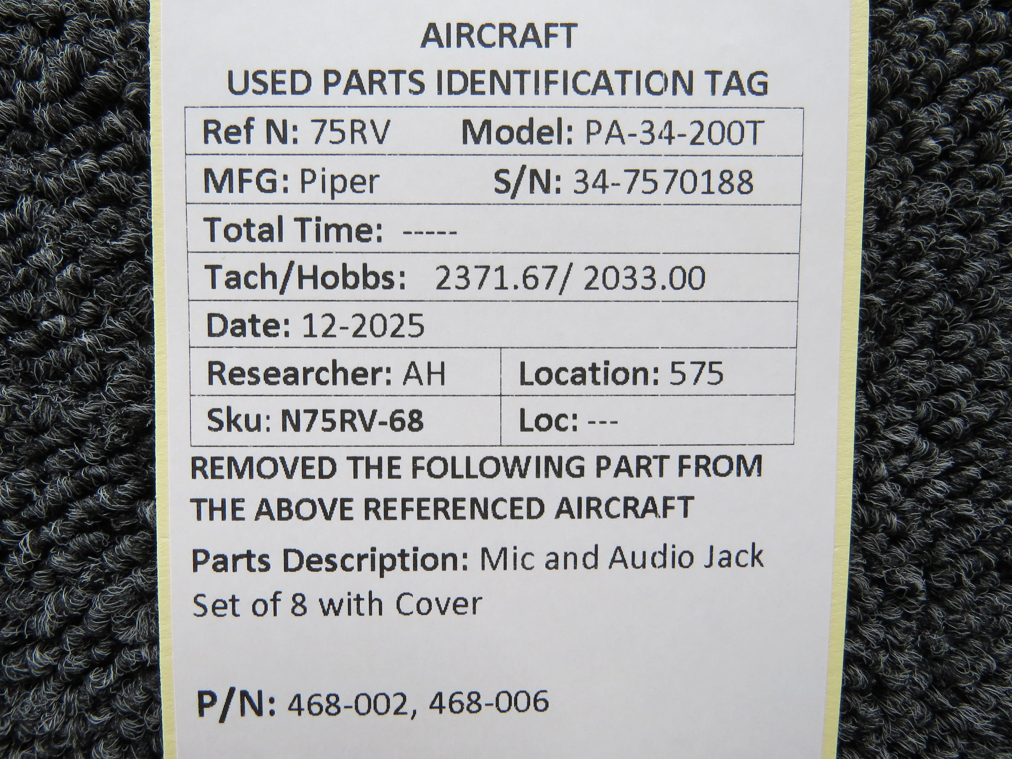Unless specifically noted, most of our used airplane parts are sold in the condition they were removed, which means you should expect the usual signs of wear and tear.