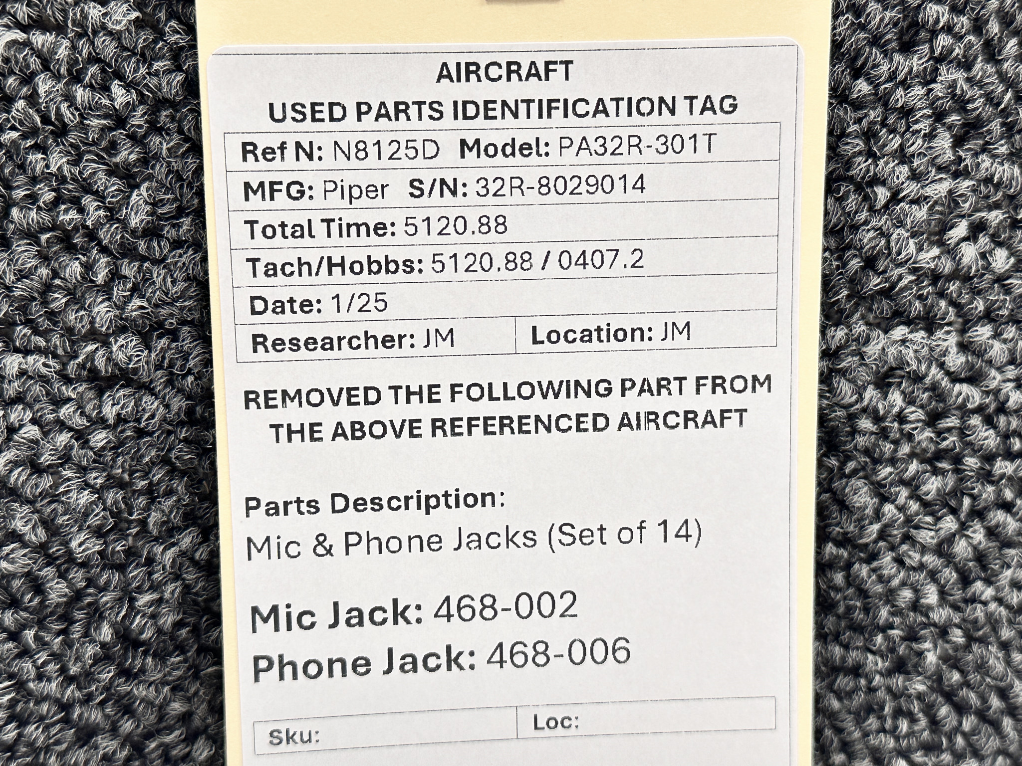 - Phone Jack Part Number: 468-006