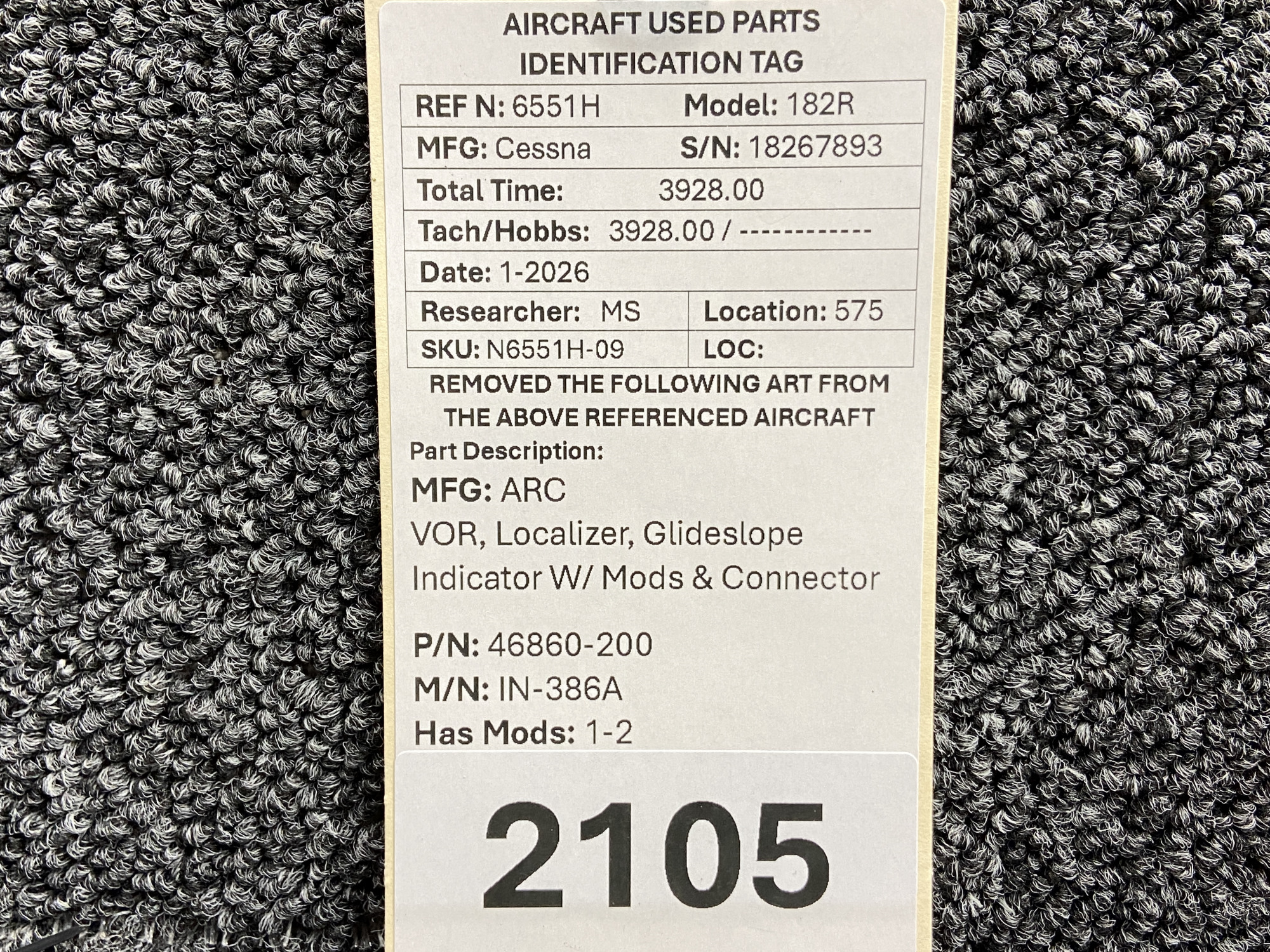 Unless specifically noted, most of our used airplane parts are sold in the condition they were removed, which means you should expect the usual signs of wear and tear.