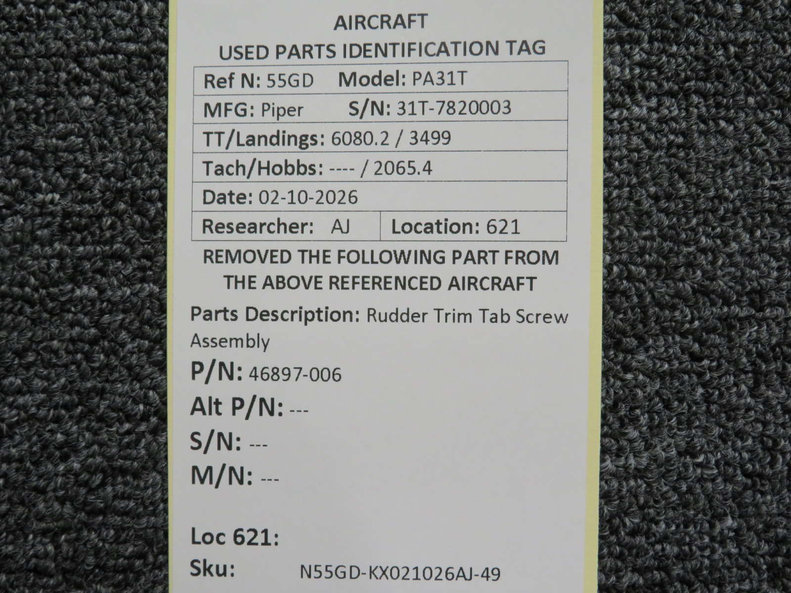 Unless specifically noted, most of our used airplane parts are sold in the condition they were removed, which means you should expect the usual signs of wear and tear.
