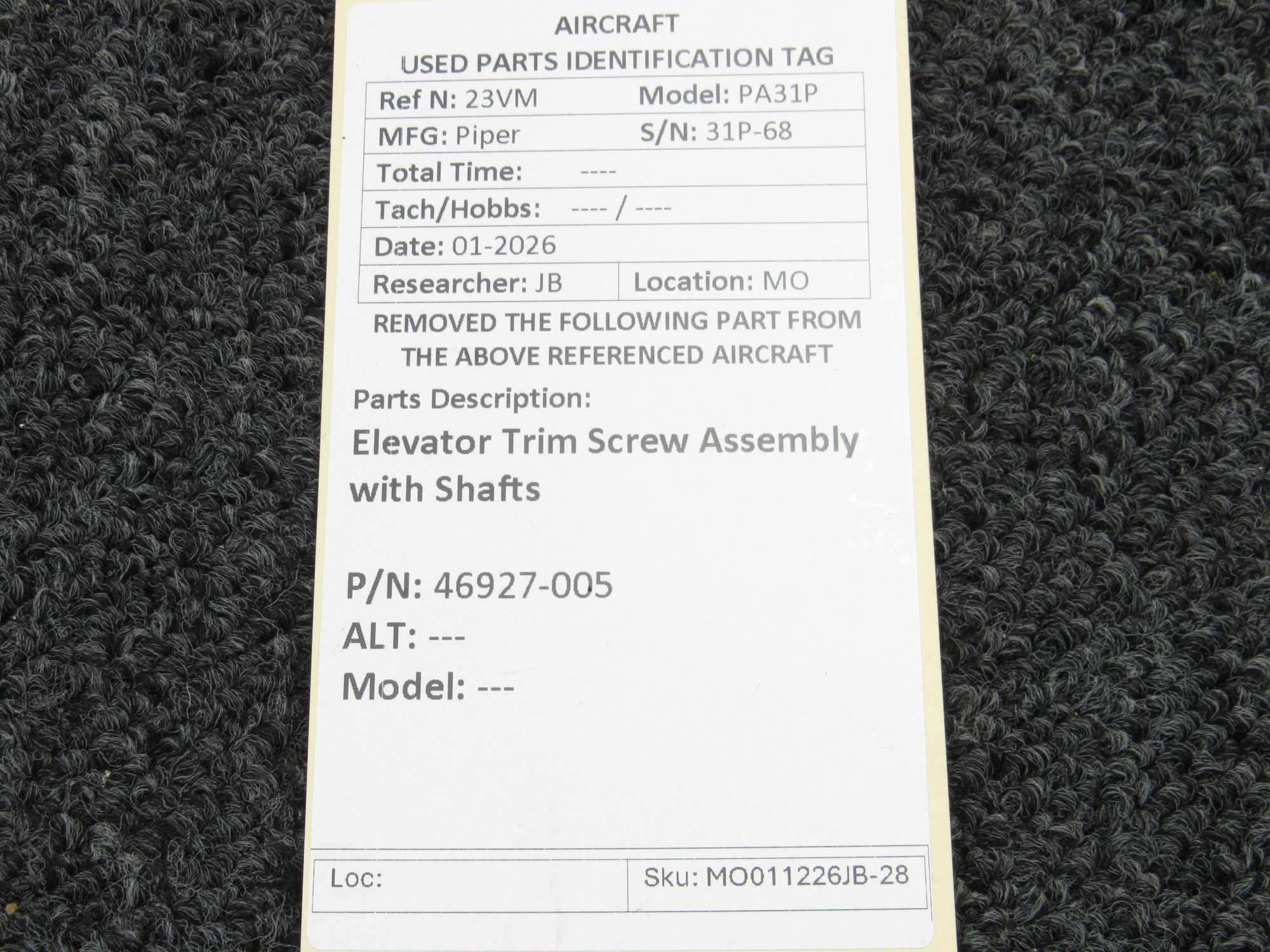 Unless specifically noted, most of our used airplane parts are sold in the condition they were removed, which means you should expect the usual signs of wear and tear.