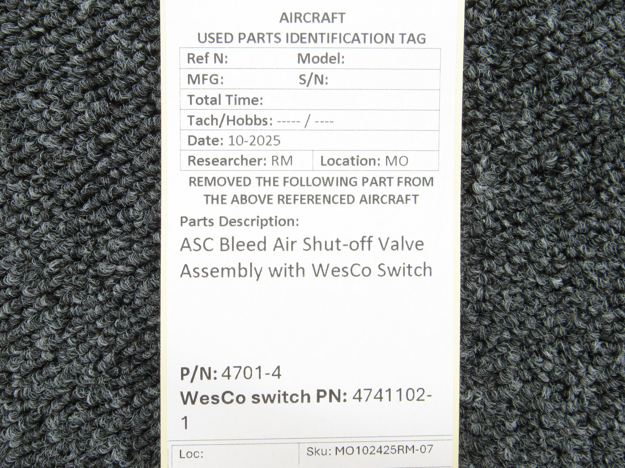 Unless specifically noted, most of our used airplane parts are sold in the condition they were removed, which means you should expect the usual signs of wear and tear.
