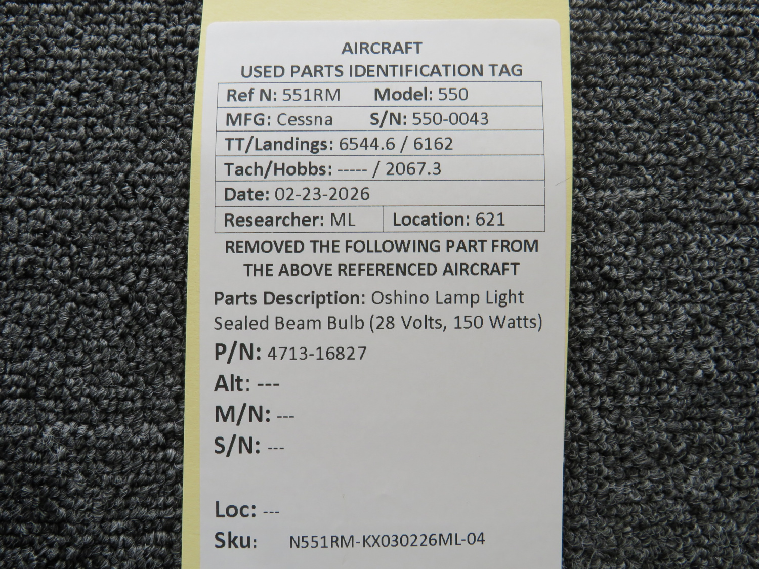 Unless specifically noted, most of our used airplane parts are sold in the condition they were removed, which means you should expect the usual signs of wear and tear.