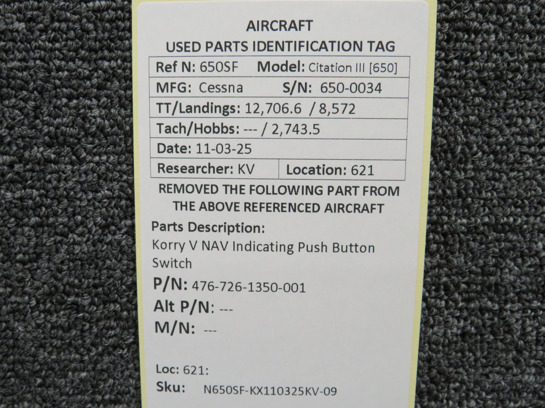 Unless specifically noted, most of our used airplane parts are sold in the condition they were removed, which means you should expect the usual signs of wear and tear.