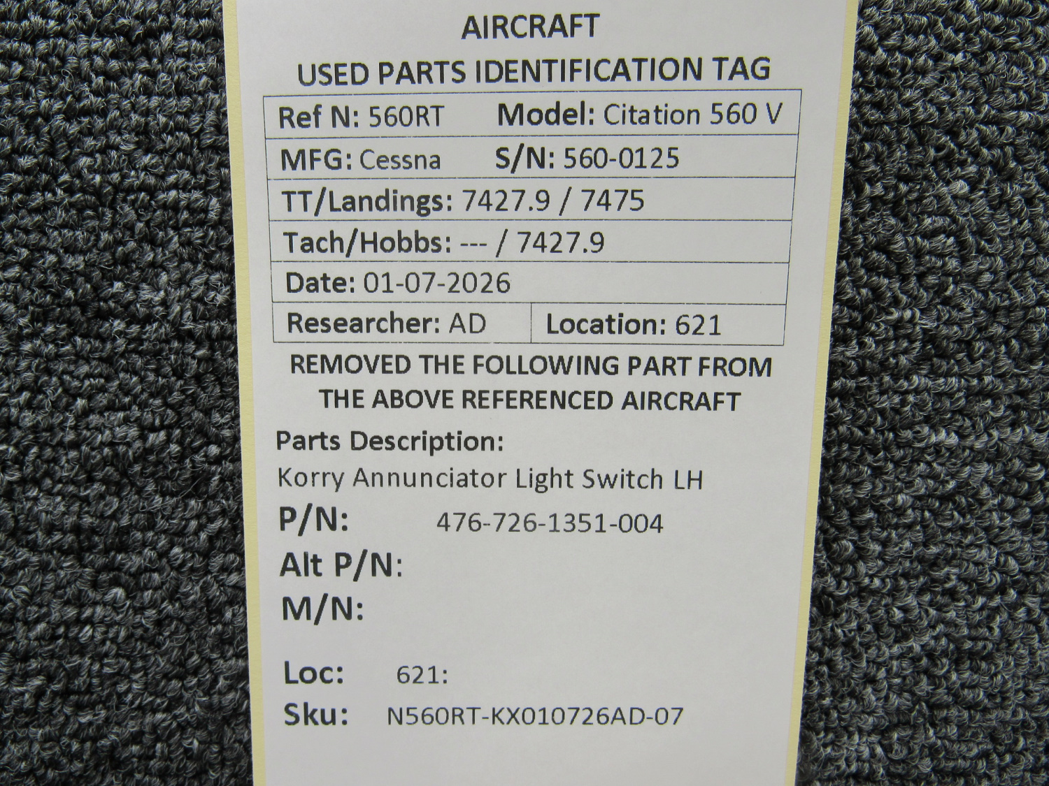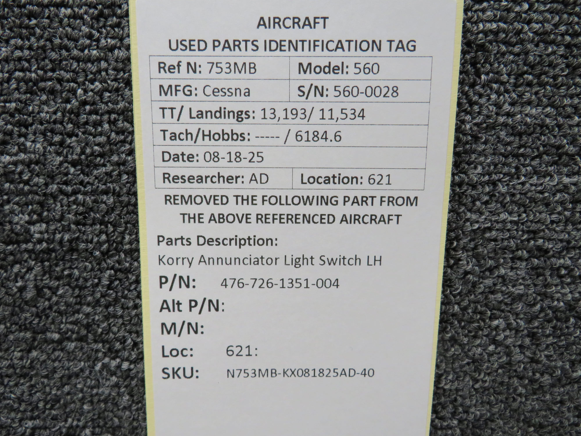 Unless specifically noted, most of our used airplane parts are sold in the condition they were removed, which means you should expect the usual signs of wear and tear.