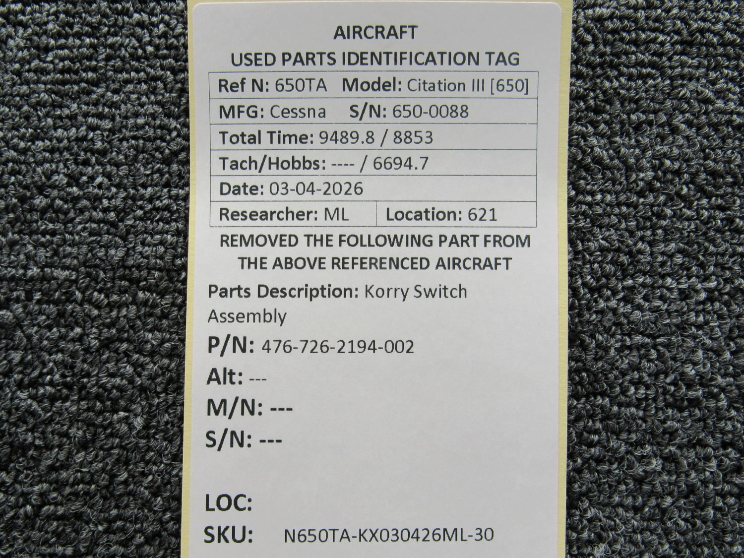 Every part is carefully inspected throughout our process and several times before it goes online. Most items are sold as-removed, just as they came off the aircraft. These parts are not functionally tested. What we do provide is clear photos, full traceability when available, pricing that reflects the as-removed condition, and a no-nonsense 90-day return window.