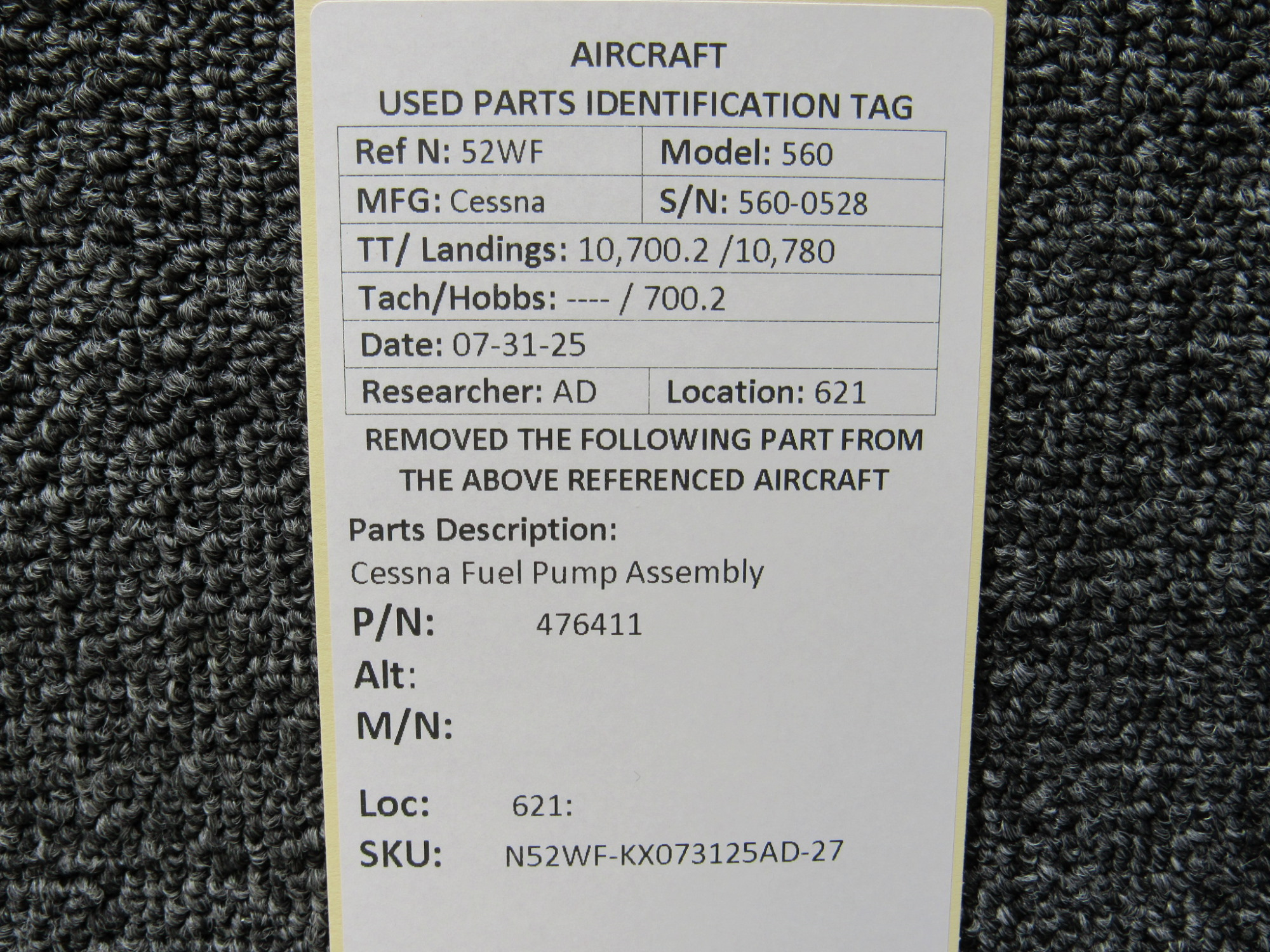 Unless specifically noted, most of our used airplane parts are sold in the condition they were removed, which means you should expect the usual signs of wear and tear.