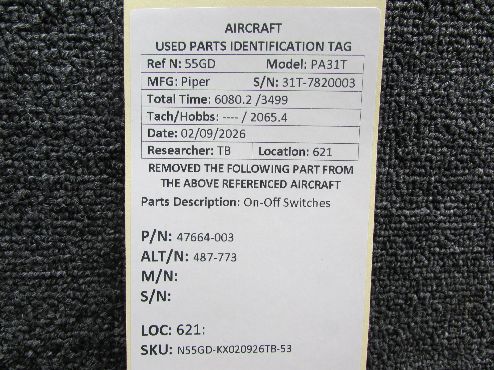 Unless specifically noted, most of our used airplane parts are sold in the condition they were removed, which means you should expect the usual signs of wear and tear.