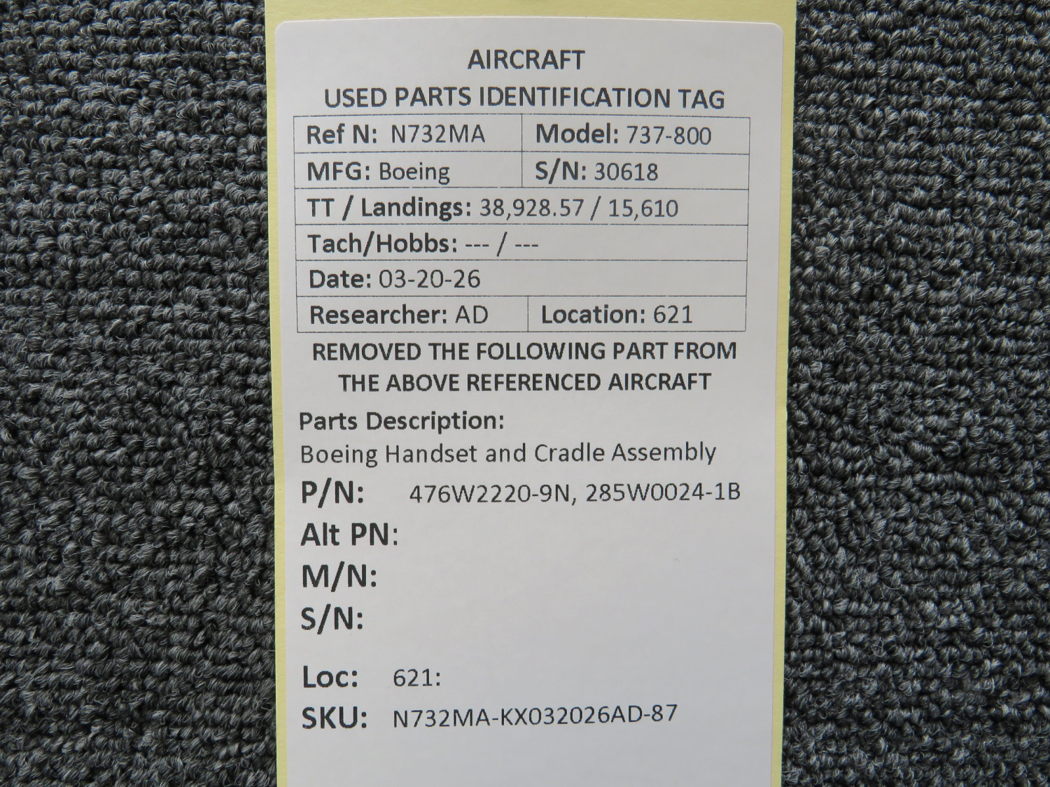 Every part is carefully inspected throughout our process and several times before it goes online. Most items are sold as-removed, just as they came off the aircraft. These parts are not functionally tested. What we do provide is clear photos, full traceability when available, pricing that reflects the as-removed condition, and a no-nonsense 90-day return window.