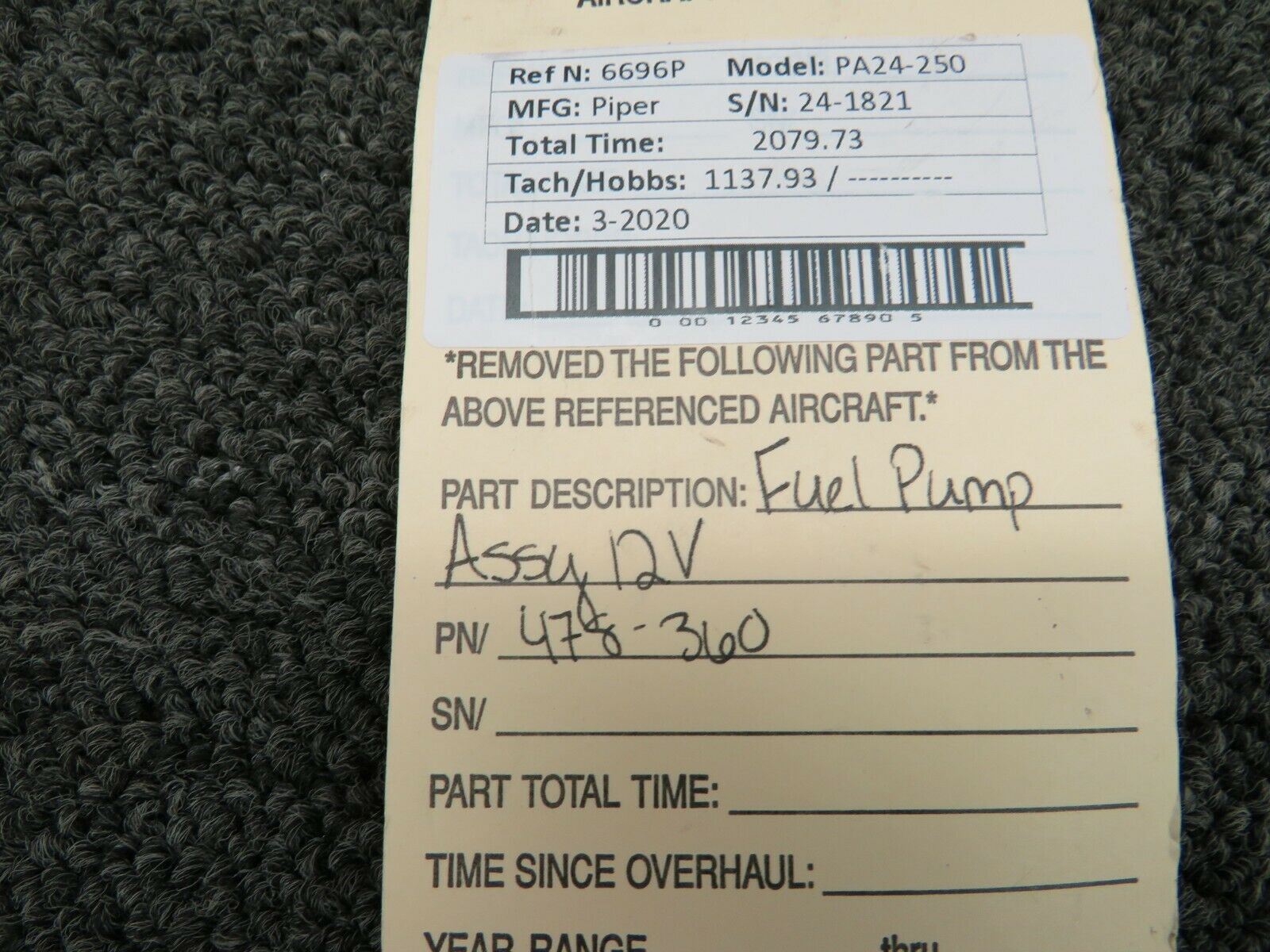 478-360 Piper PA24-250 Fuel Pump (Volts: 14)