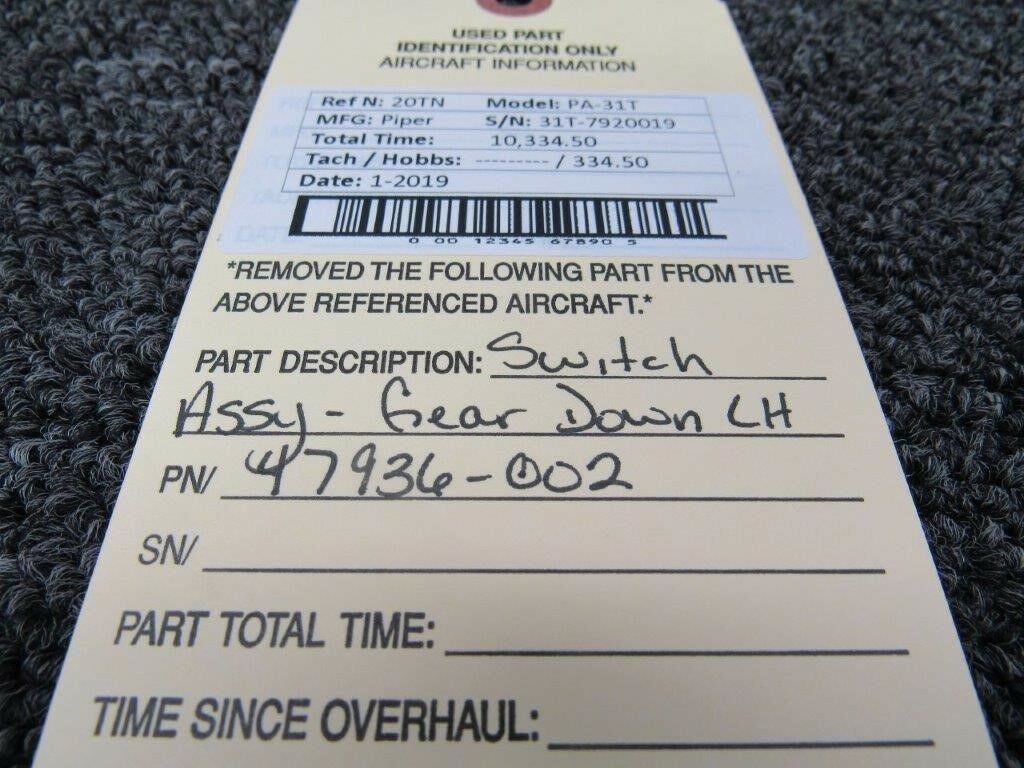 Attention International Buyers: We routinely export aircraft parts to destinations around the world. All import duties, taxes, and any other charges related to importing parts to your country are not included in the price of the item or shipping charges, these are 100% the responsibility of the buyer. Please check with your country's customs office to help determine what these additional costs will be prior to purchasing. We do not mark merchandise value below purchase value nor mark items as "gifts" as both U.S. and international law strictly prohibits this. We do not ship to forwarding shipping stations. A business or residential address is required for delivery.