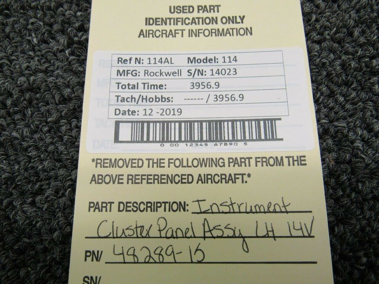 48289-15 Rockwell Commander 114 Instrument Cluster Panel Assy LH (Volts: 14)