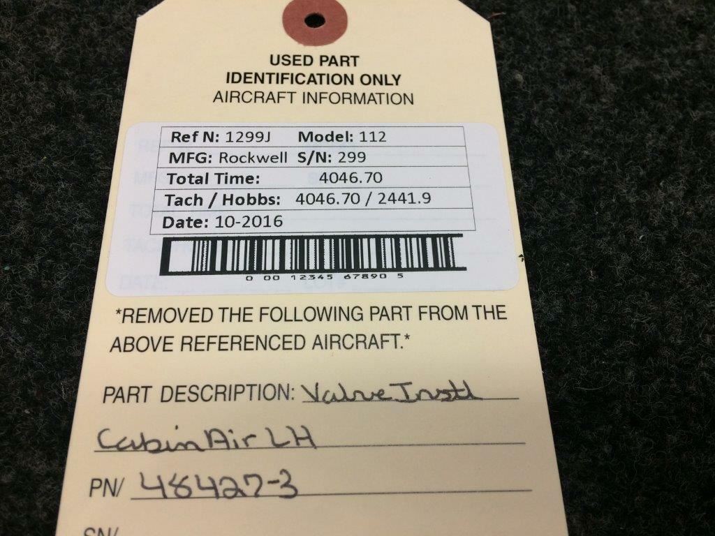 48427-3 Rockwell 112 Valve Assy Cabin Air LH