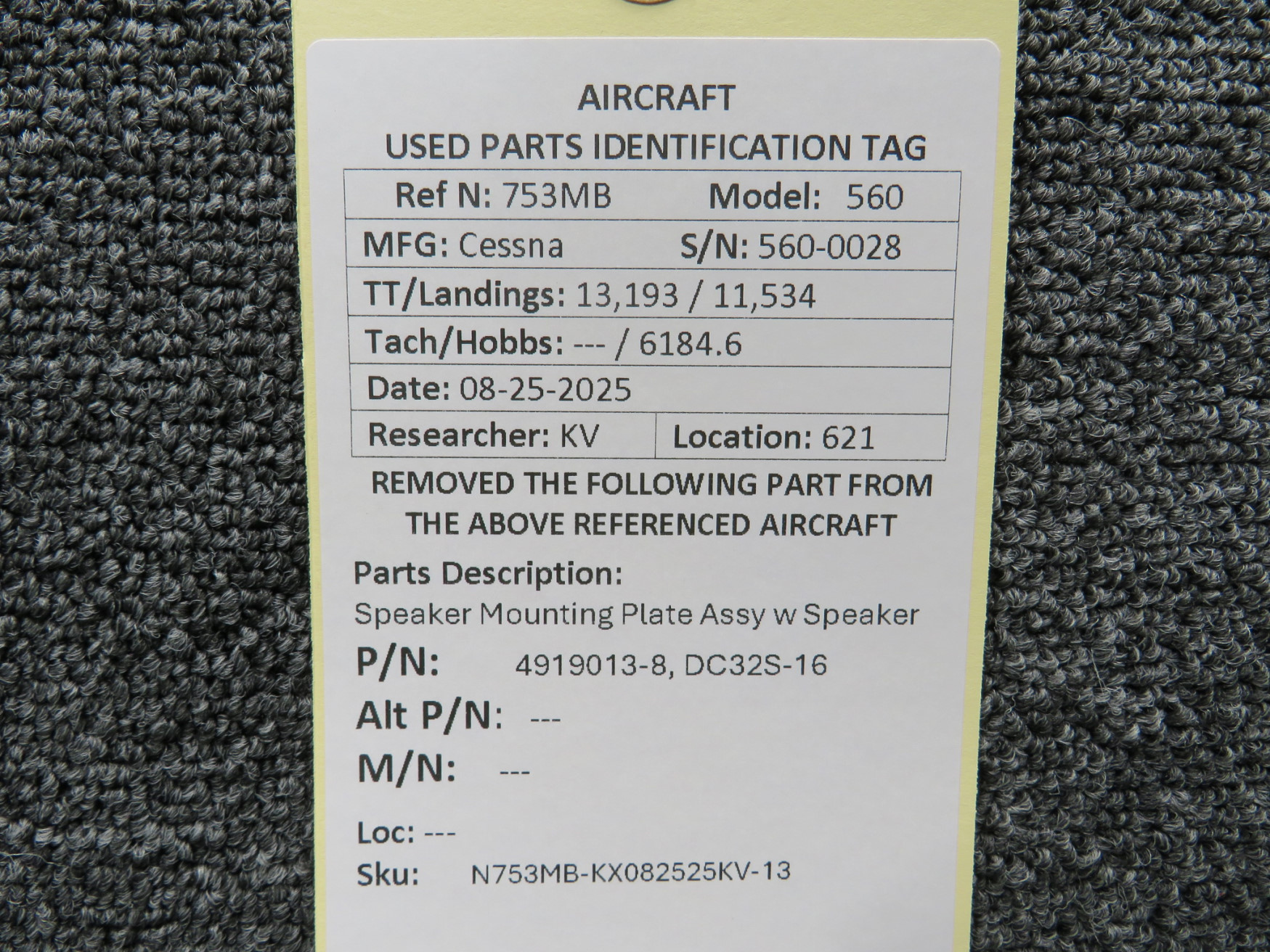 Unless specifically noted, most of our used airplane parts are sold in the condition they were removed, which means you should expect the usual signs of wear and tear.