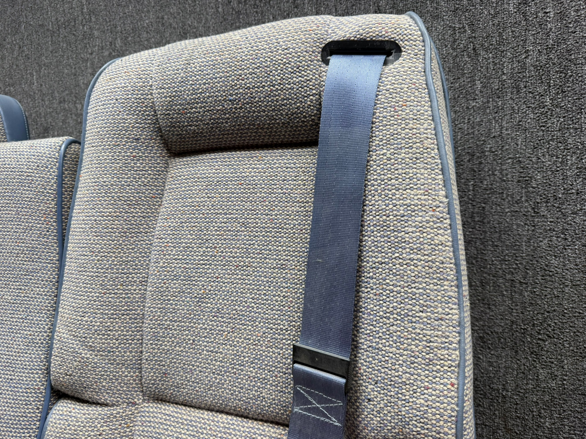 - Fabric Colors: blue and tan