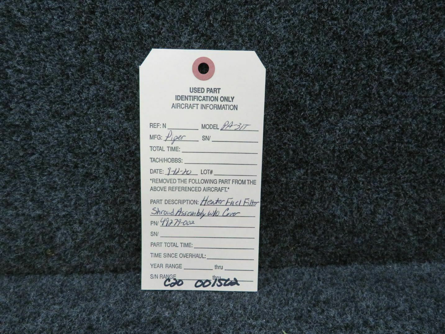 49279-002 Piper PA-31T Heater Fuel Filter Shroud Assembly (C20)