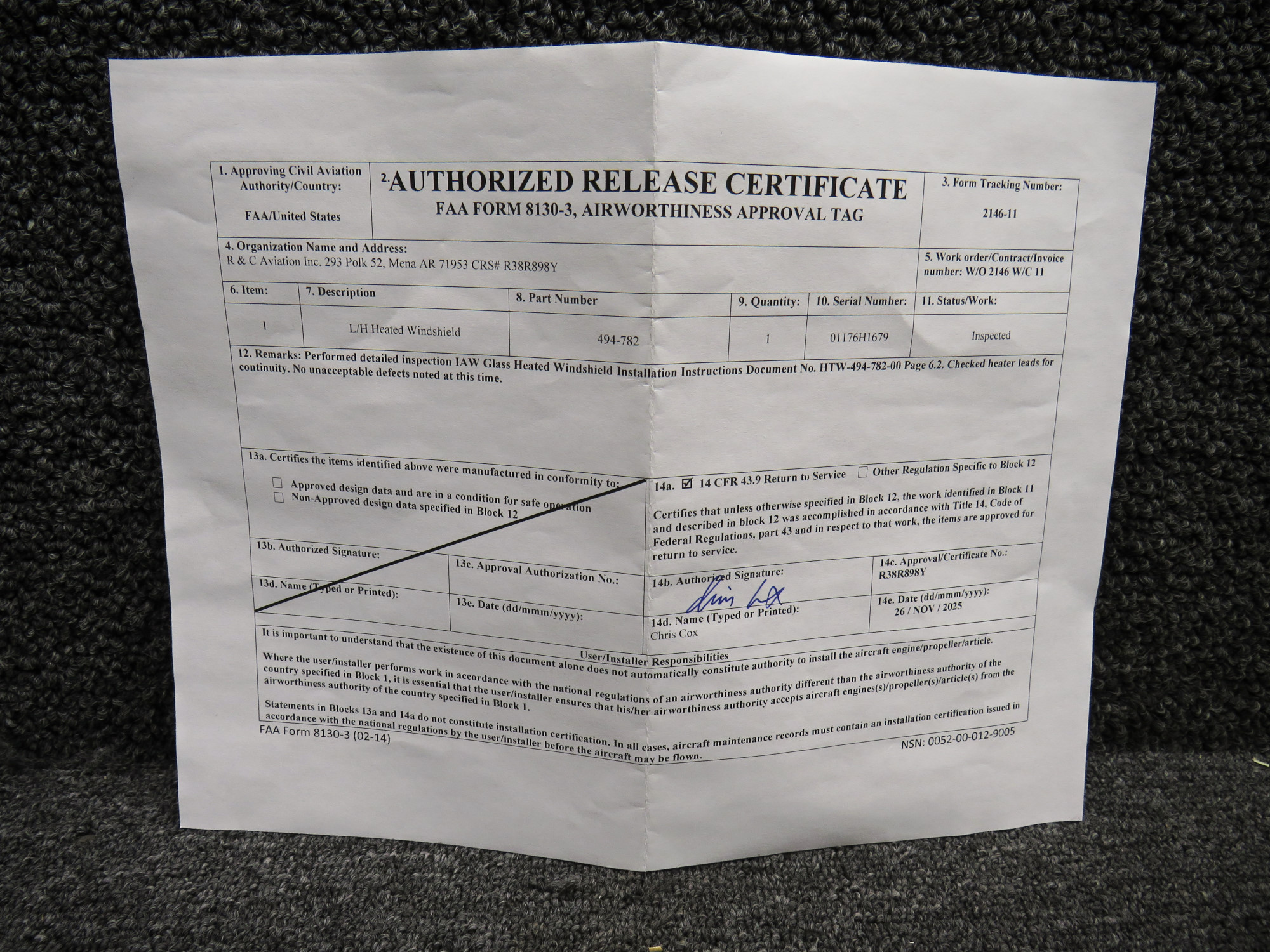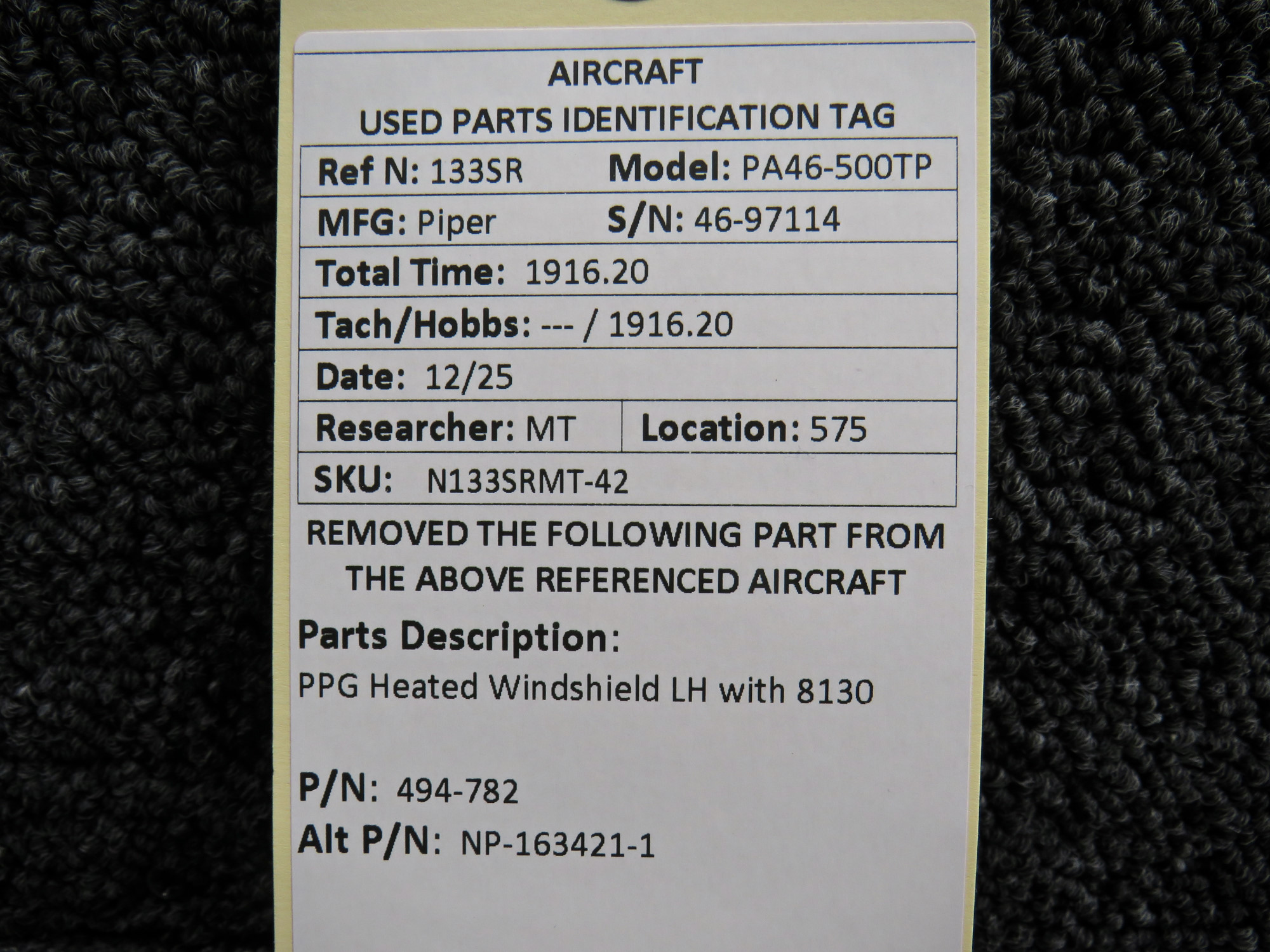 - Comes with 8130-3 from 11-26-2025 (inspected)