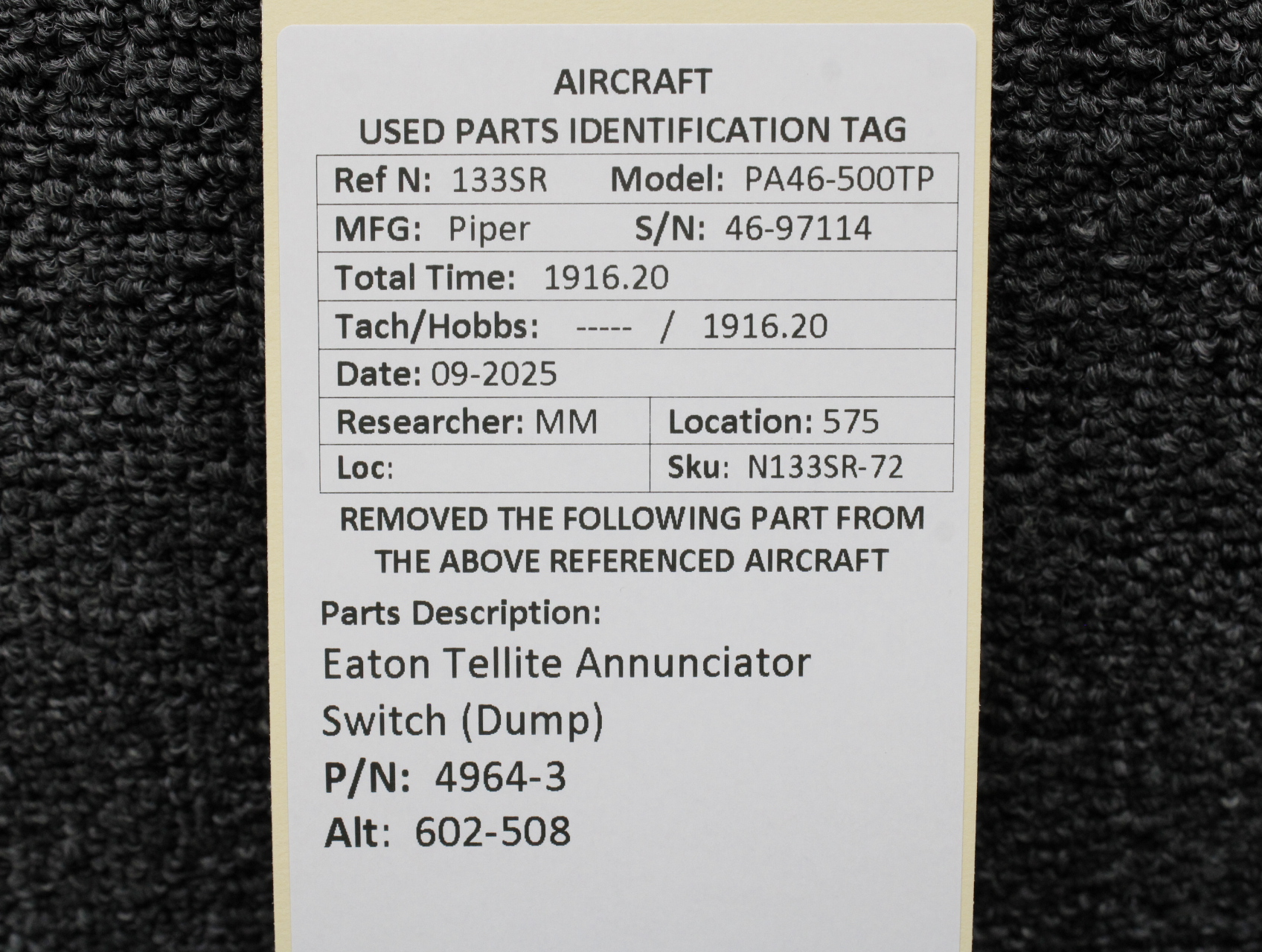 Unless specifically noted, most of our used airplane parts are sold in the condition they were removed, which means you should expect the usual signs of wear and tear.