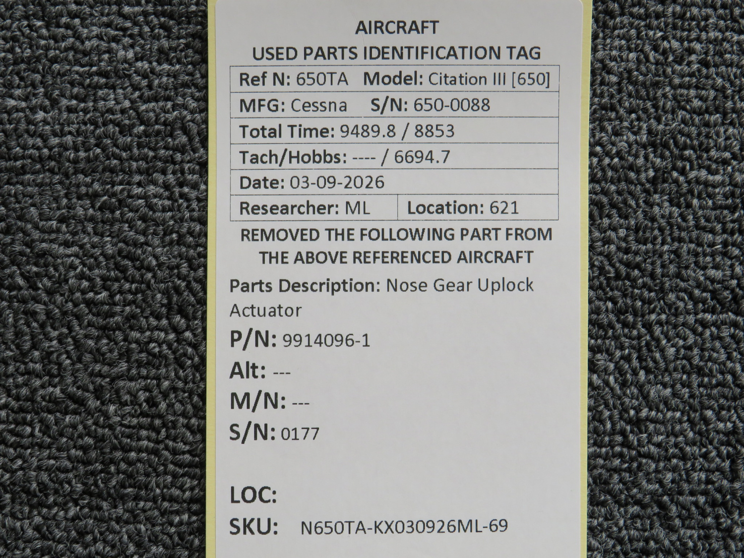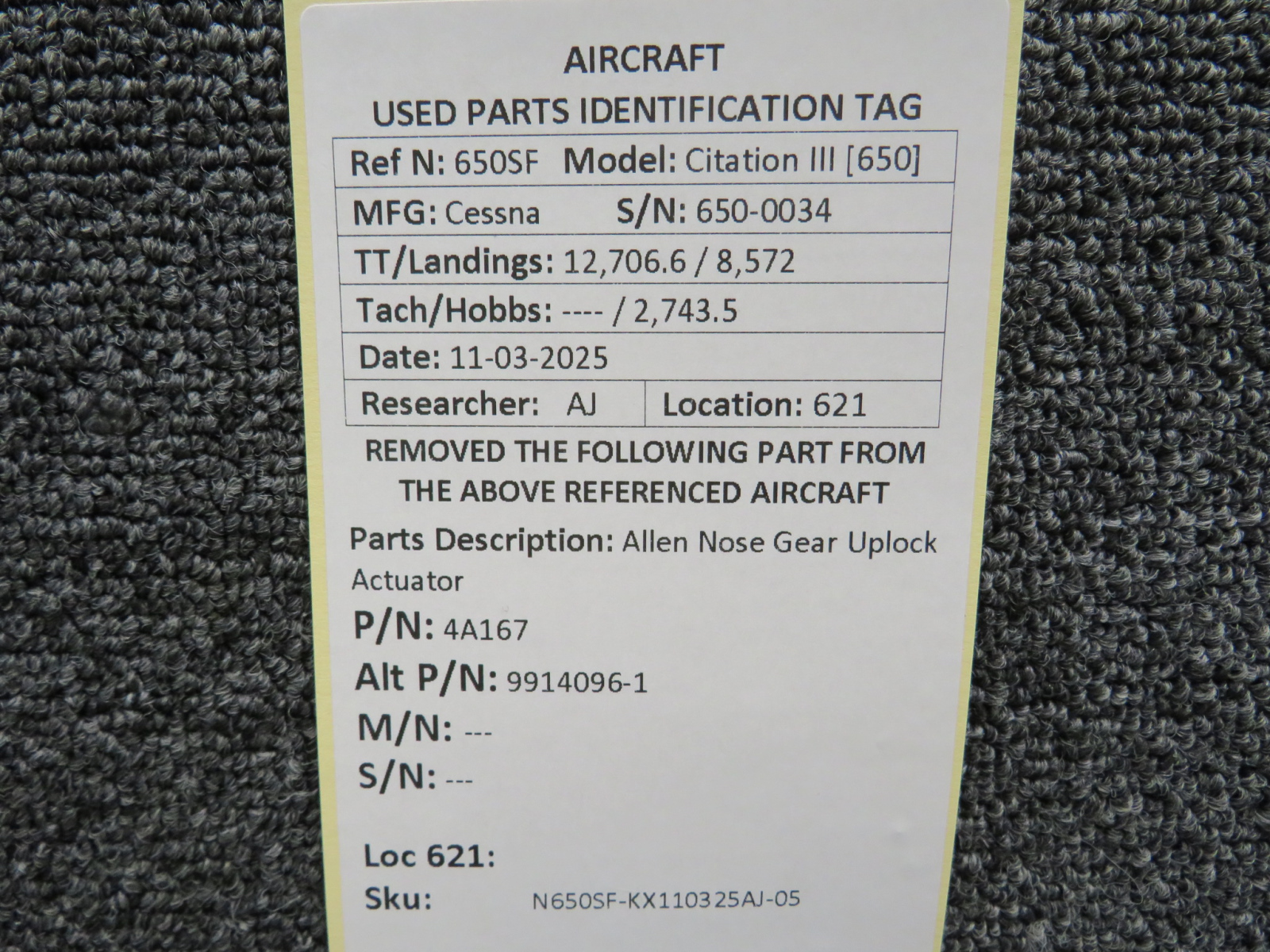 Every part is carefully inspected throughout our process and several times before it goes online. Most items are sold as-removed, just as they came off the aircraft. These parts are not functionally tested. What we do provide is clear photos, full traceability when available, pricing that reflects the as-removed condition, and a no-nonsense 90-day return window.