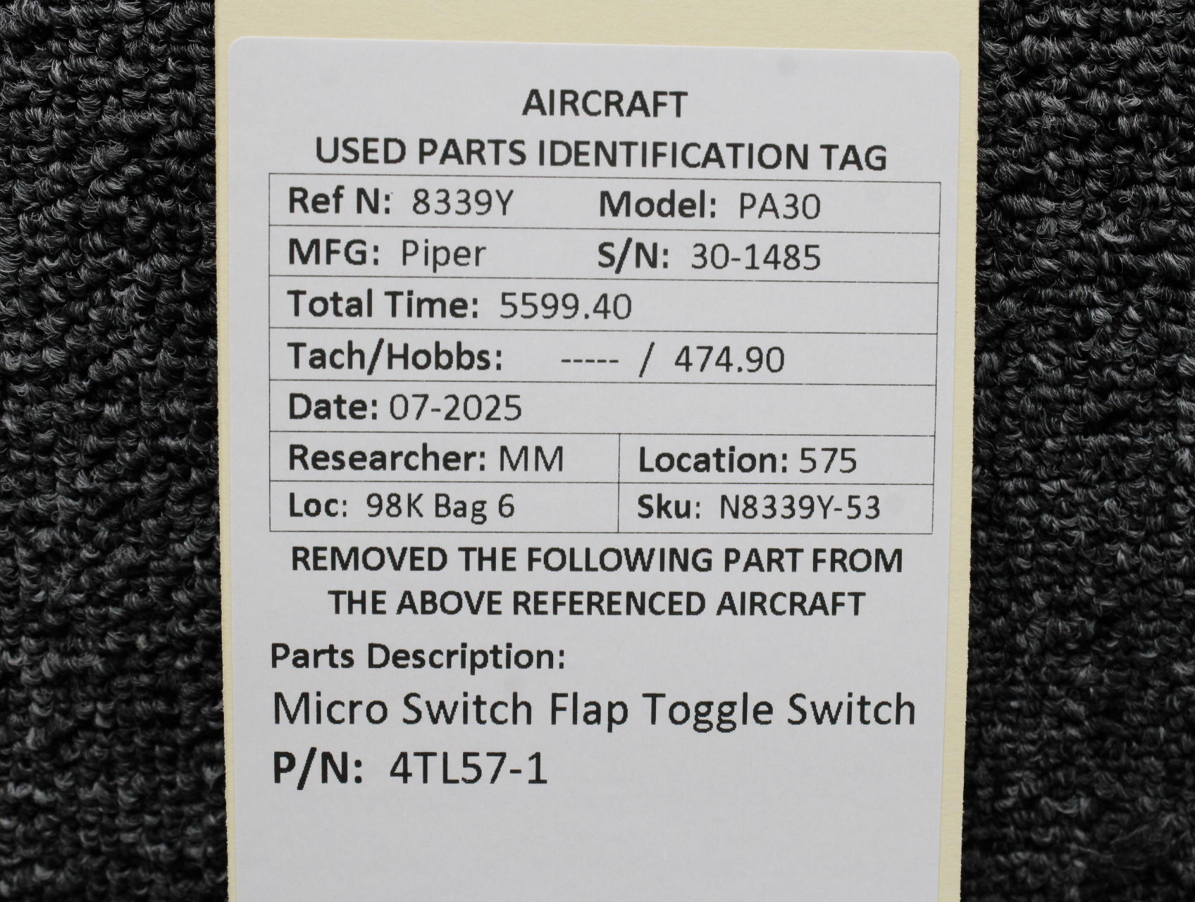 Every part is carefully inspected throughout our process and several times before it goes online. Most items are sold as-removed, just as they came off the aircraft. These parts are not functionally tested. What we do provide is clear photos, full traceability when available, pricing that reflects the as-removed condition, and a no-nonsense 90-day return window.