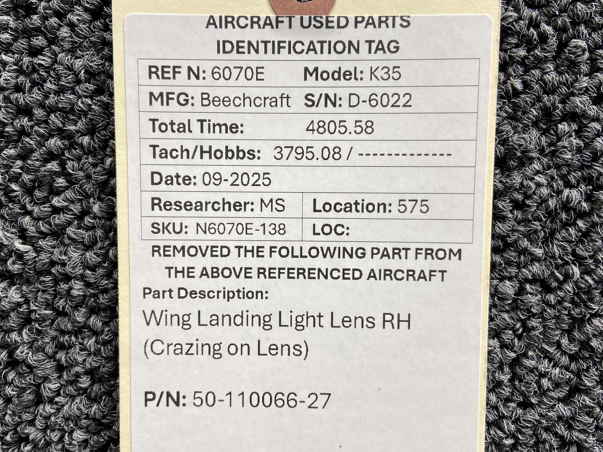 Unless specifically noted, most of our used airplane parts are sold in the condition they were removed, which means you should expect the usual signs of wear and tear.