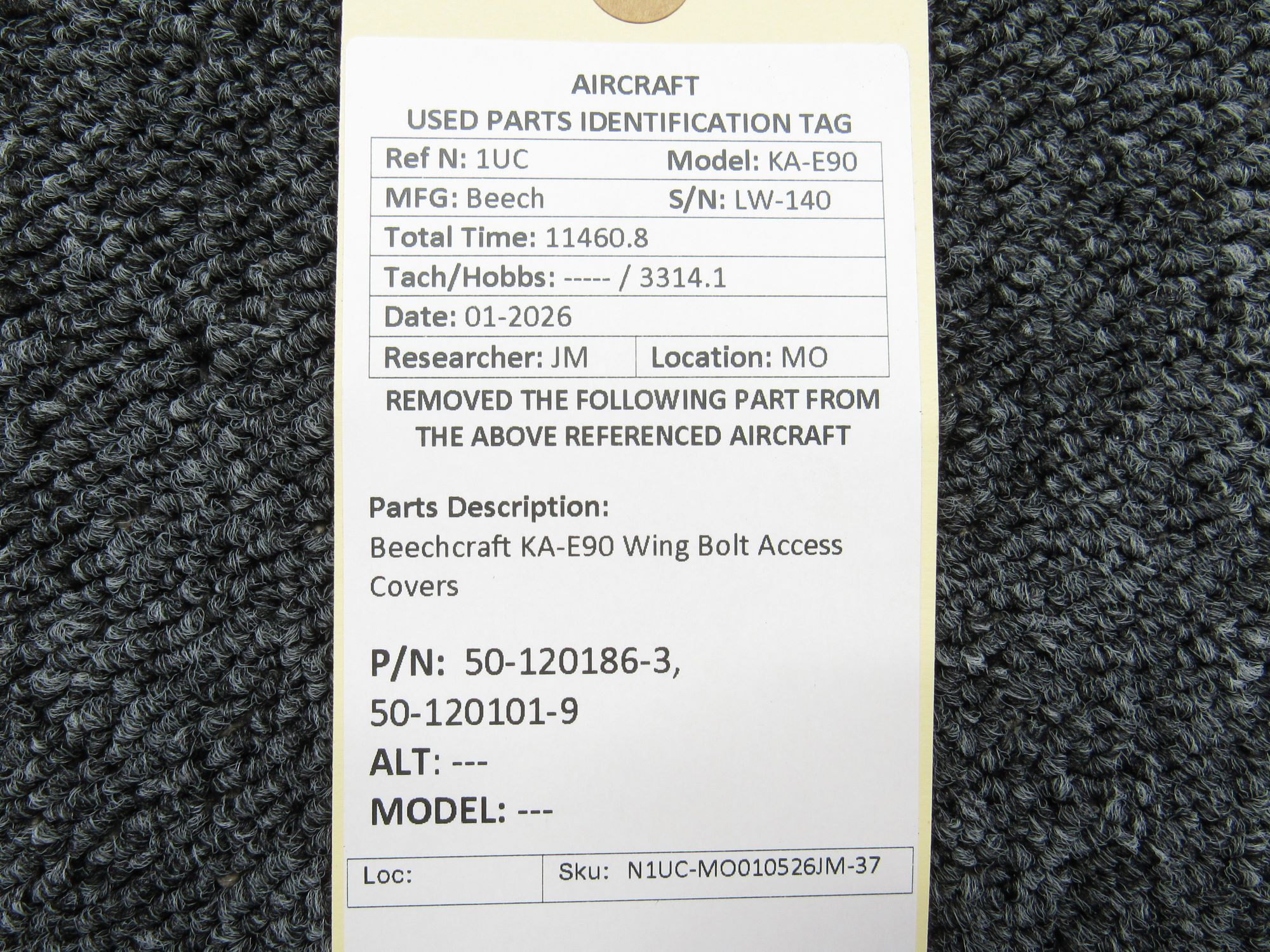 - Upper Aft LH Wing Bolt Access Cover Part Number: 50-120101-9