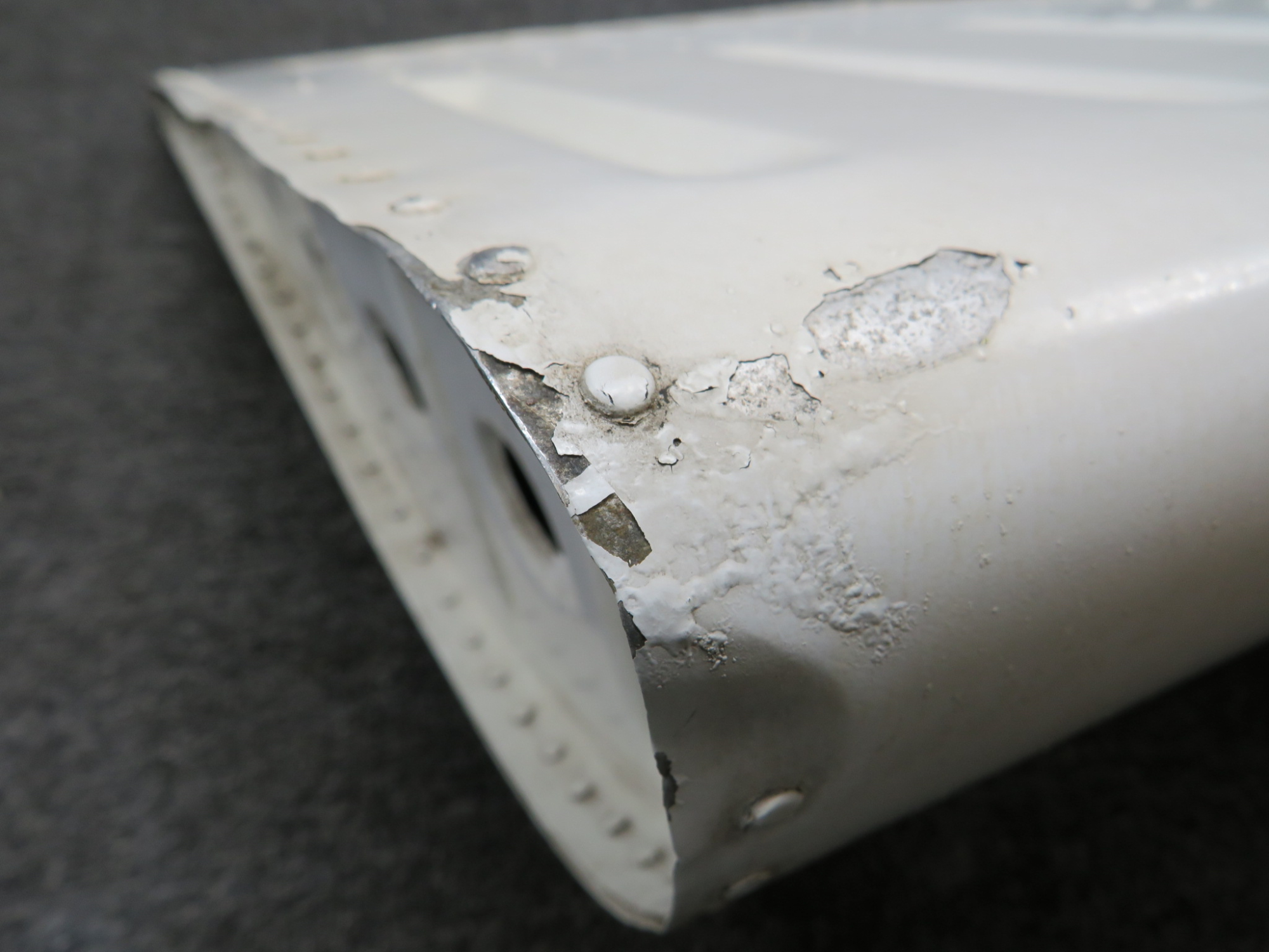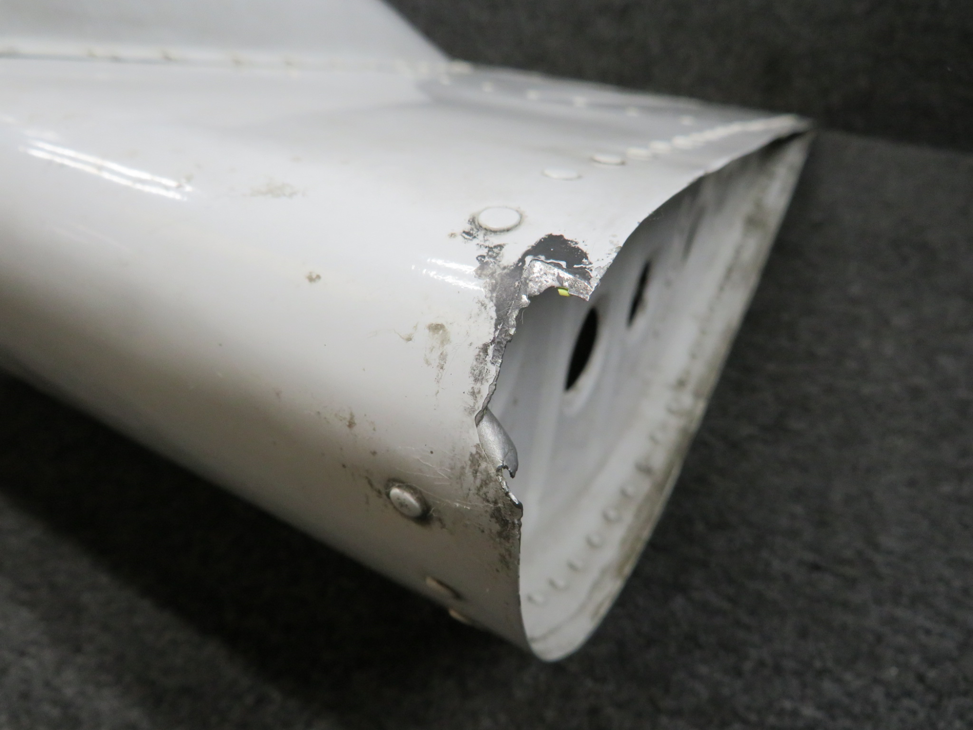 - Leading edge is dented/warped in multiple spots