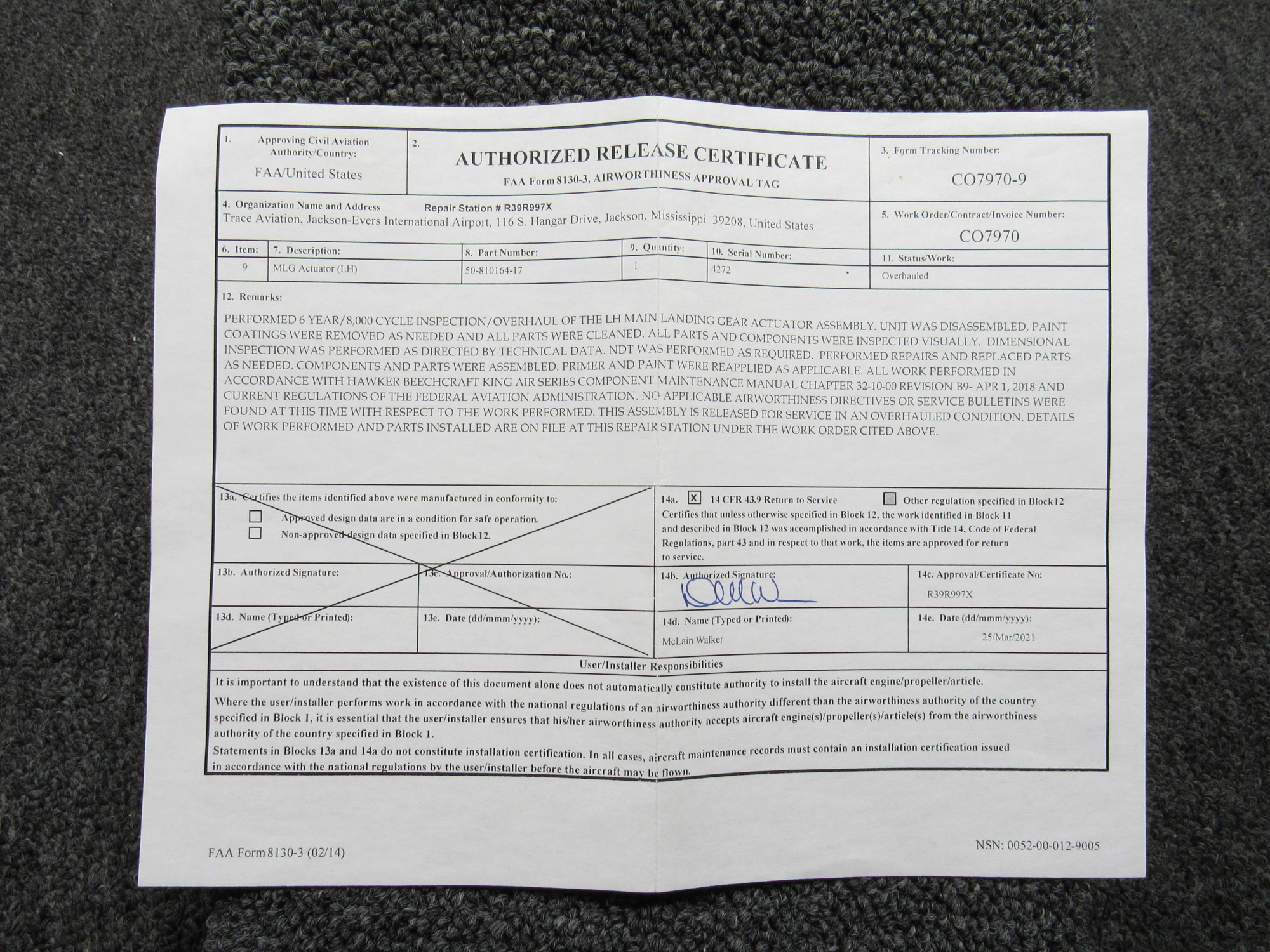 Part removed from aircraft in its original, unaltered state. Most of the inventory available from BAS Part Sales is in As-Removed condition. We removed it from the aircraft in working condition and expect it to pass inspection. As-Removed items come with our 90-day Money-Back Guarantee. Read More