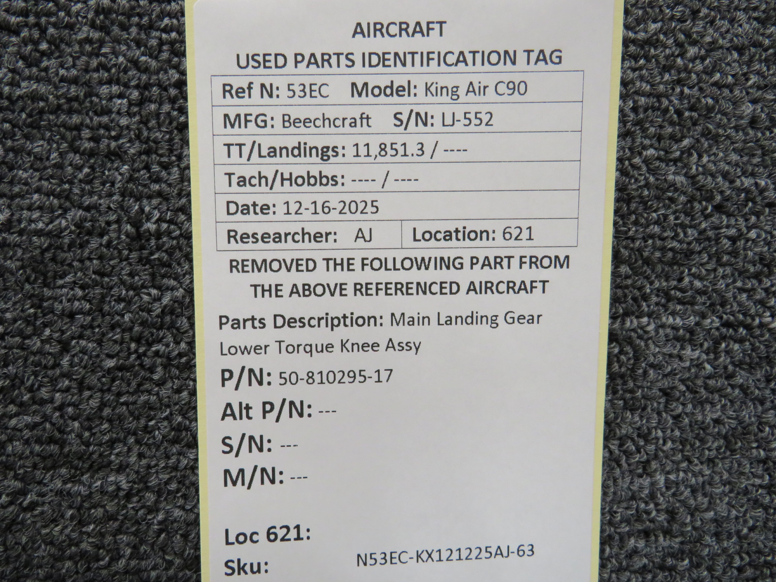 Unless specifically noted, most of our used airplane parts are sold in the condition they were removed, which means you should expect the usual signs of wear and tear.