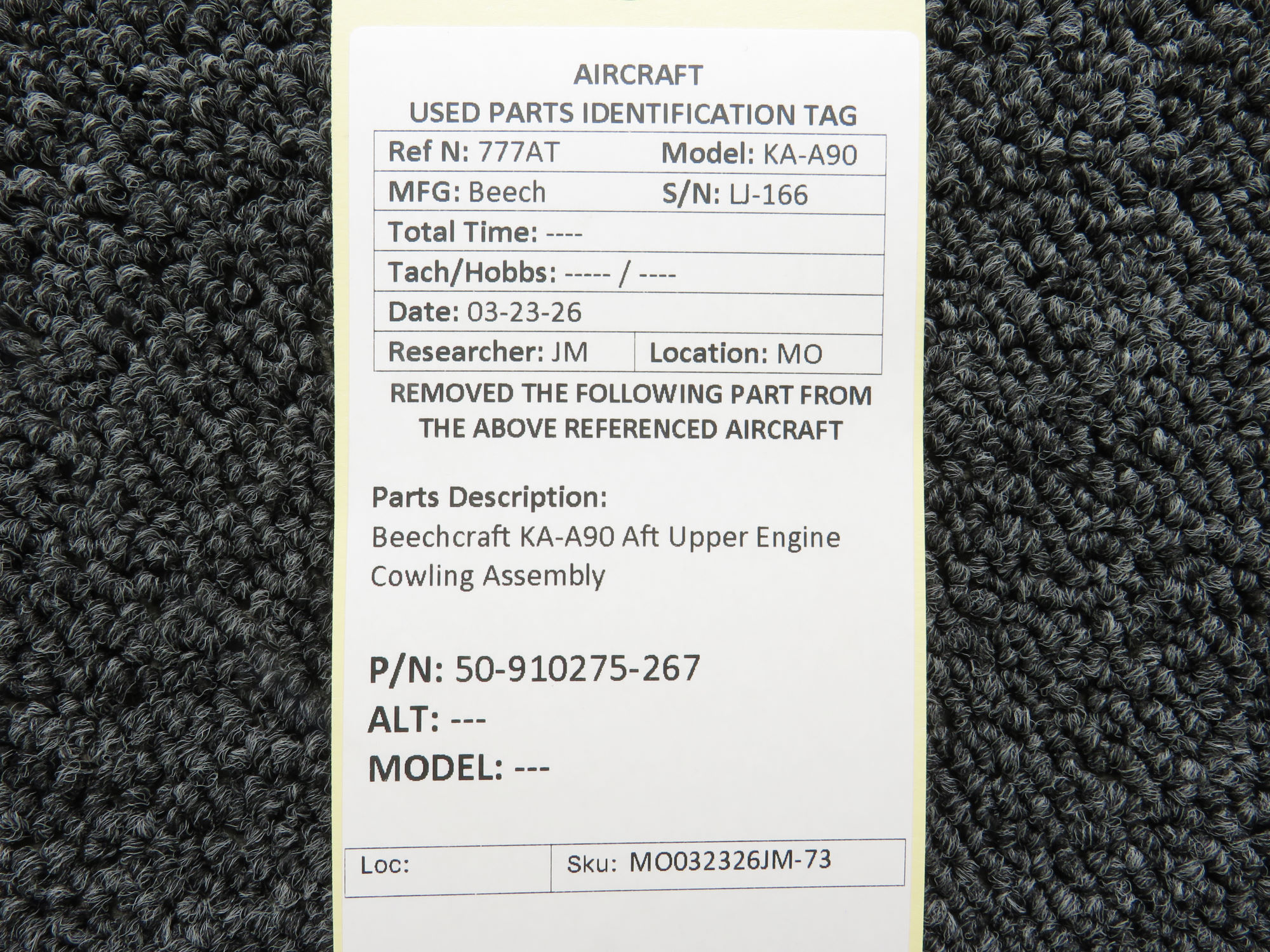 Every part is carefully inspected throughout our process and several times before it goes online. Most items are sold as-removed, just as they came off the aircraft. These parts are not functionally tested. What we do provide is clear photos, full traceability when available, pricing that reflects the as-removed condition, and a no-nonsense 90-day return window.