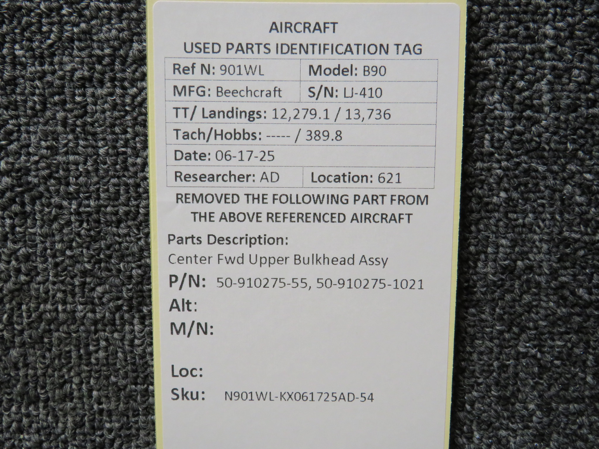 - Fwd Upper Bulkhead Part Number: 50-910275-55