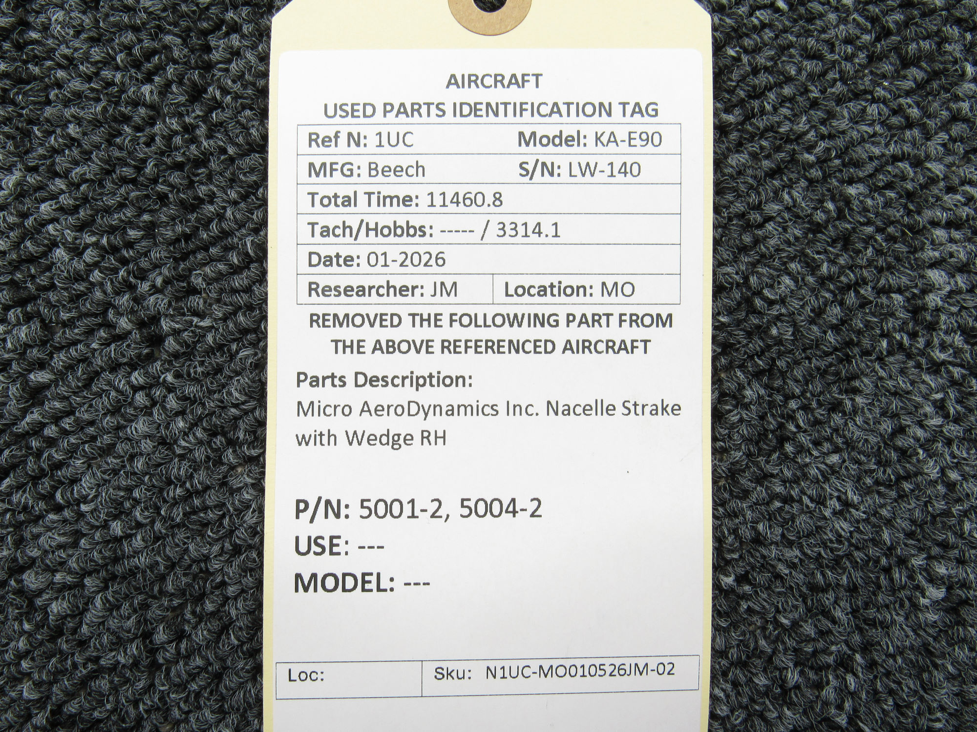 - Removed from Beechcraft KA-E90 Serial Number: LW140