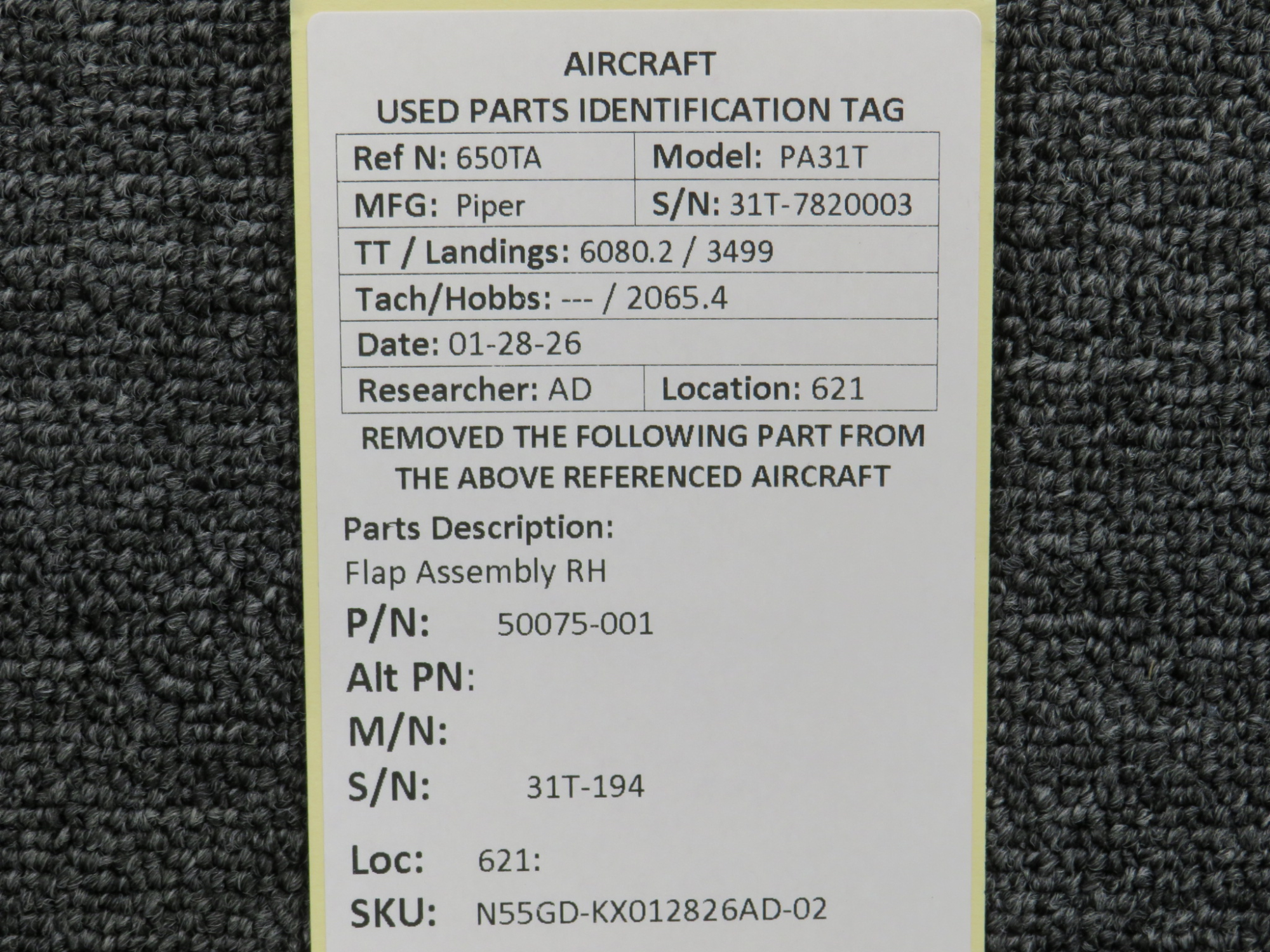 Every part is carefully inspected throughout our process and several times before it goes online. Most items are sold as-removed, just as they came off the aircraft. These parts are not functionally tested. What we do provide is clear photos, full traceability when available, pricing that reflects the as-removed condition, and a no-nonsense 90-day return window.