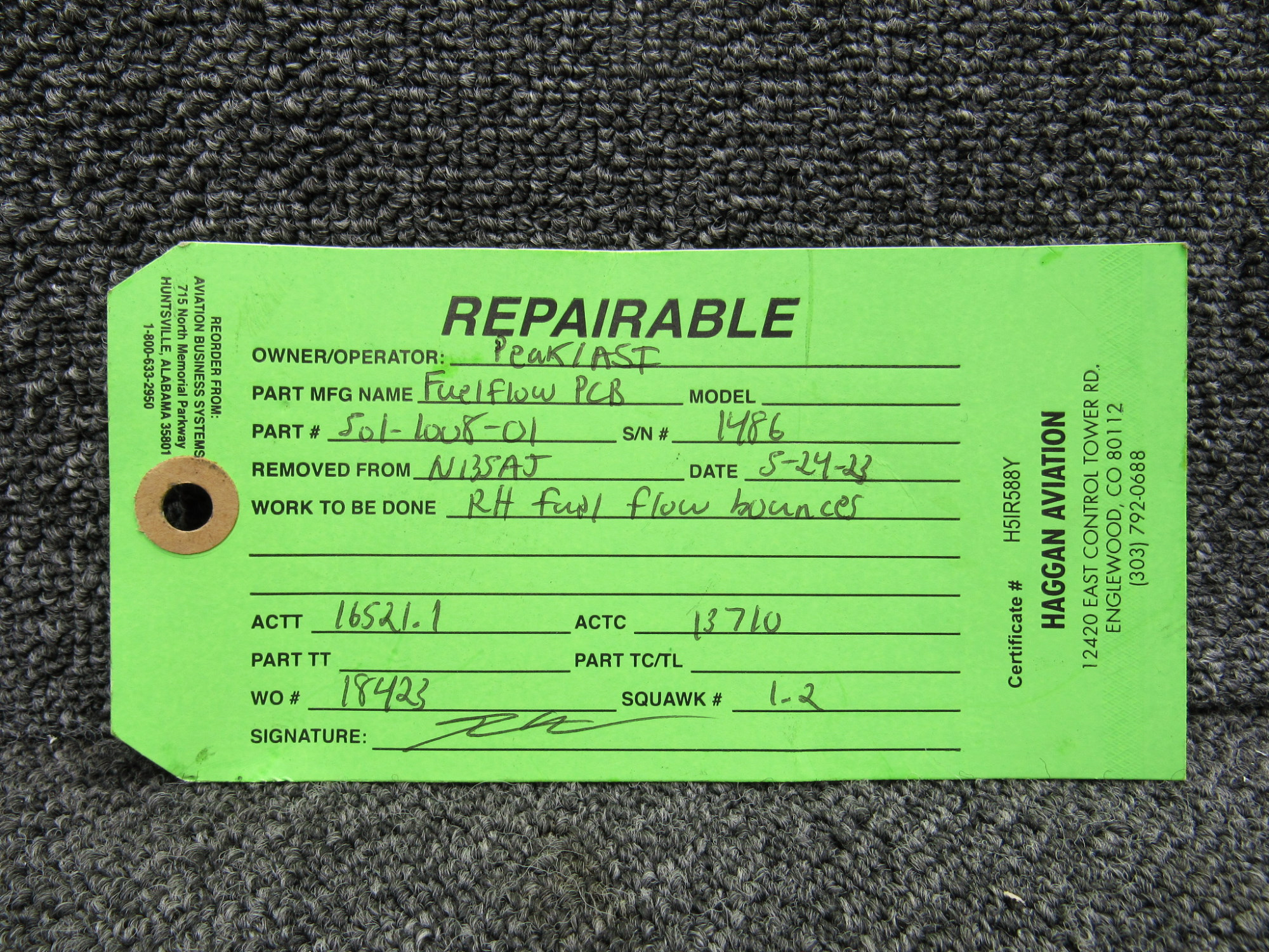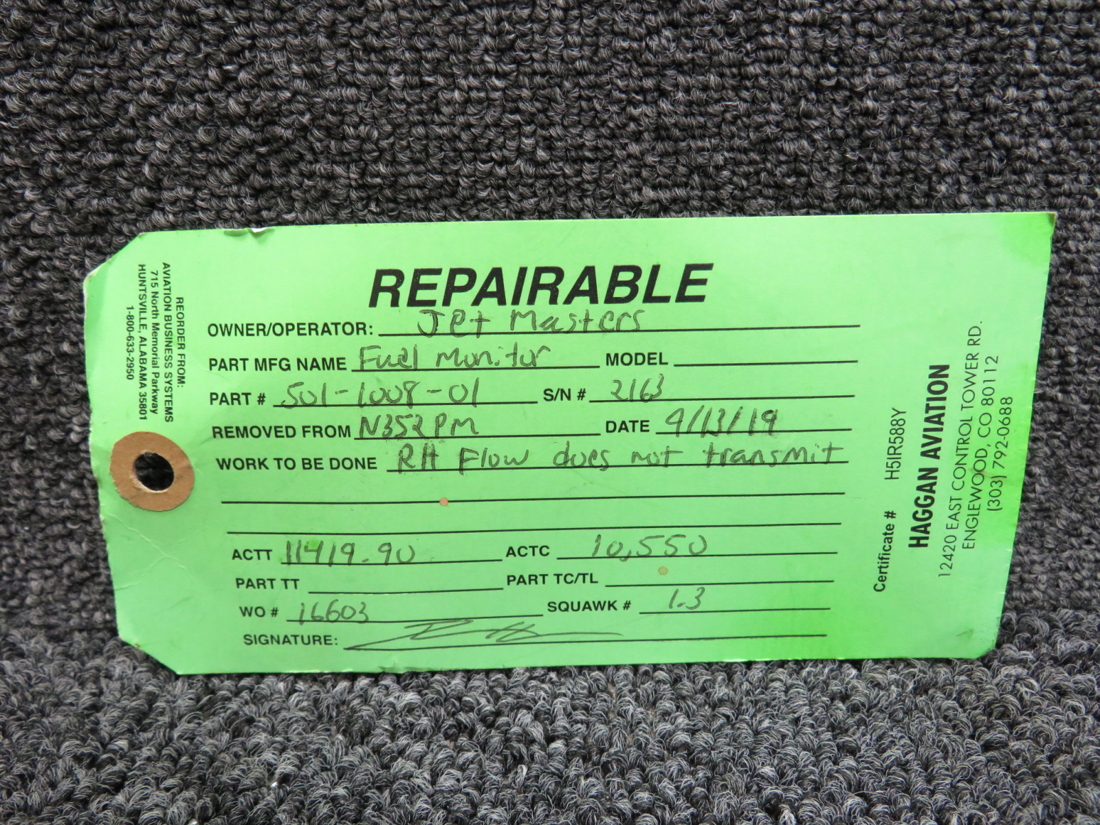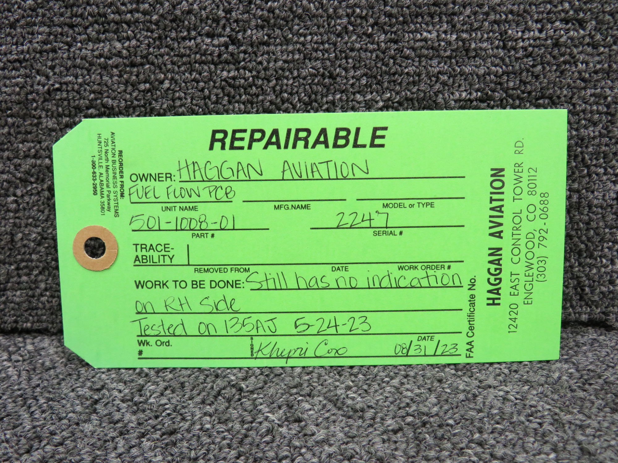 - Has green repairable tag