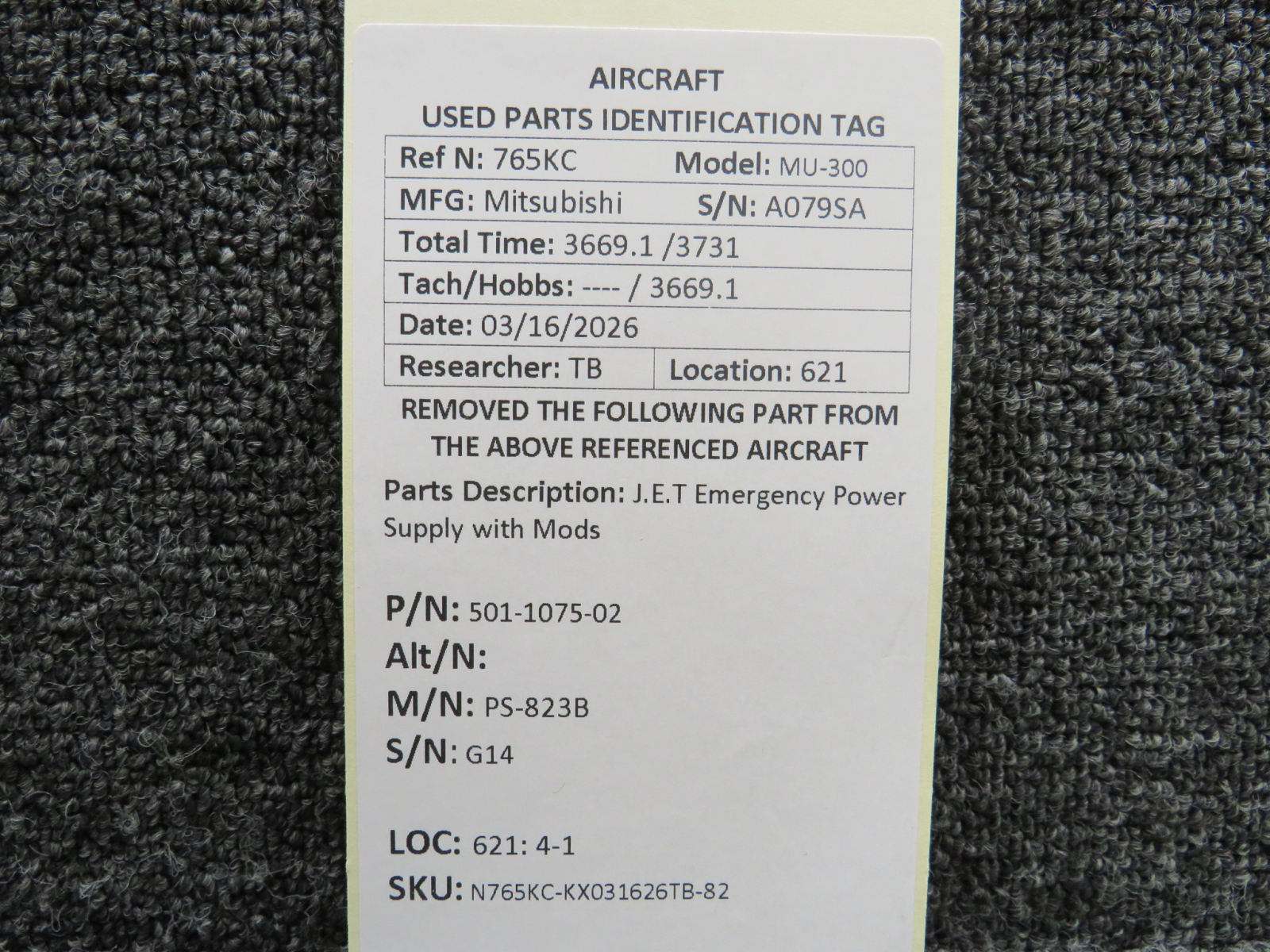 Every part is carefully inspected throughout our process and several times before it goes online. Most items are sold as-removed, just as they came off the aircraft. These parts are not functionally tested. What we do provide is clear photos, full traceability when available, pricing that reflects the as-removed condition, and a no-nonsense 90-day return window.
