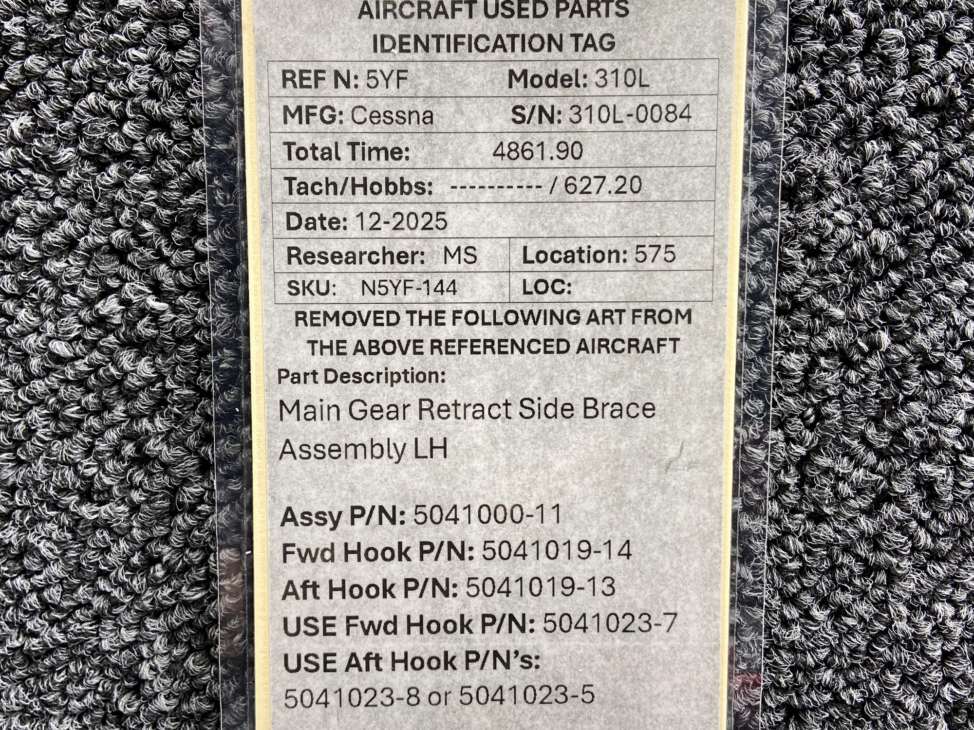 - Aft Hook Part Number: 5041019-13