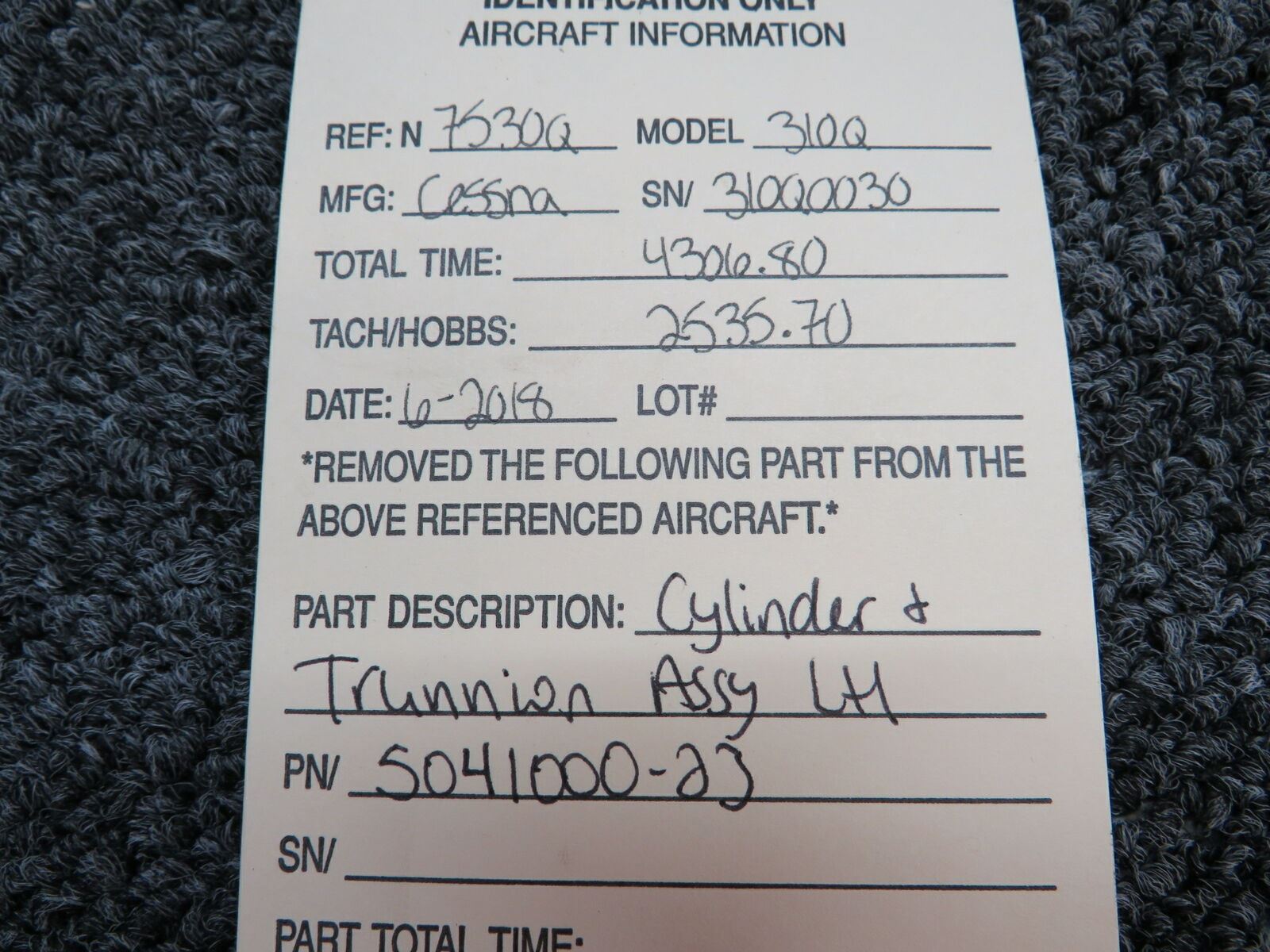 5041000-23 Cessna 310Q Cylinder & Trunnion Assembly LH