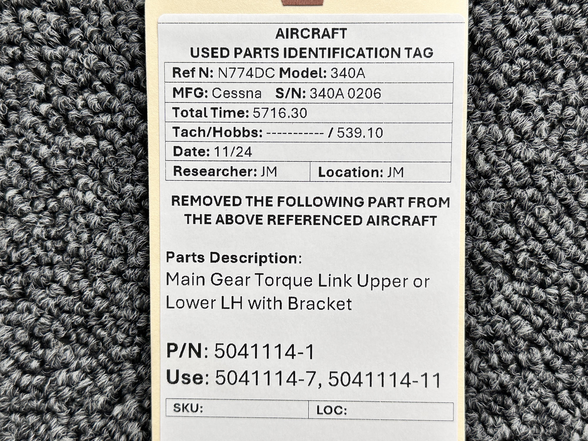 Unless specifically noted, most of our used airplane parts are sold in the condition they were removed, which means you should expect the usual signs of wear and tear.