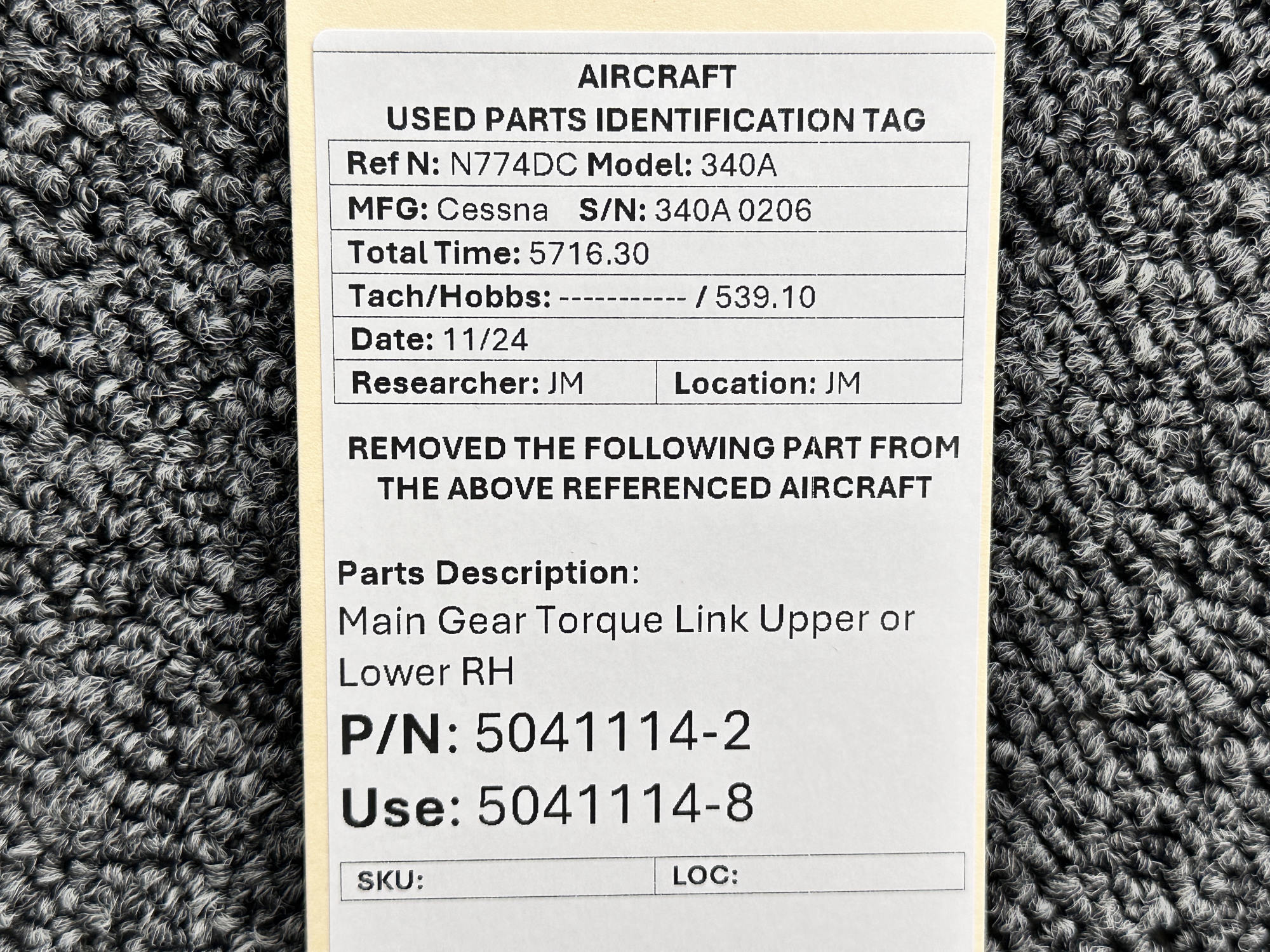 Unless specifically noted, most of our used airplane parts are sold in the condition they were removed, which means you should expect the usual signs of wear and tear.