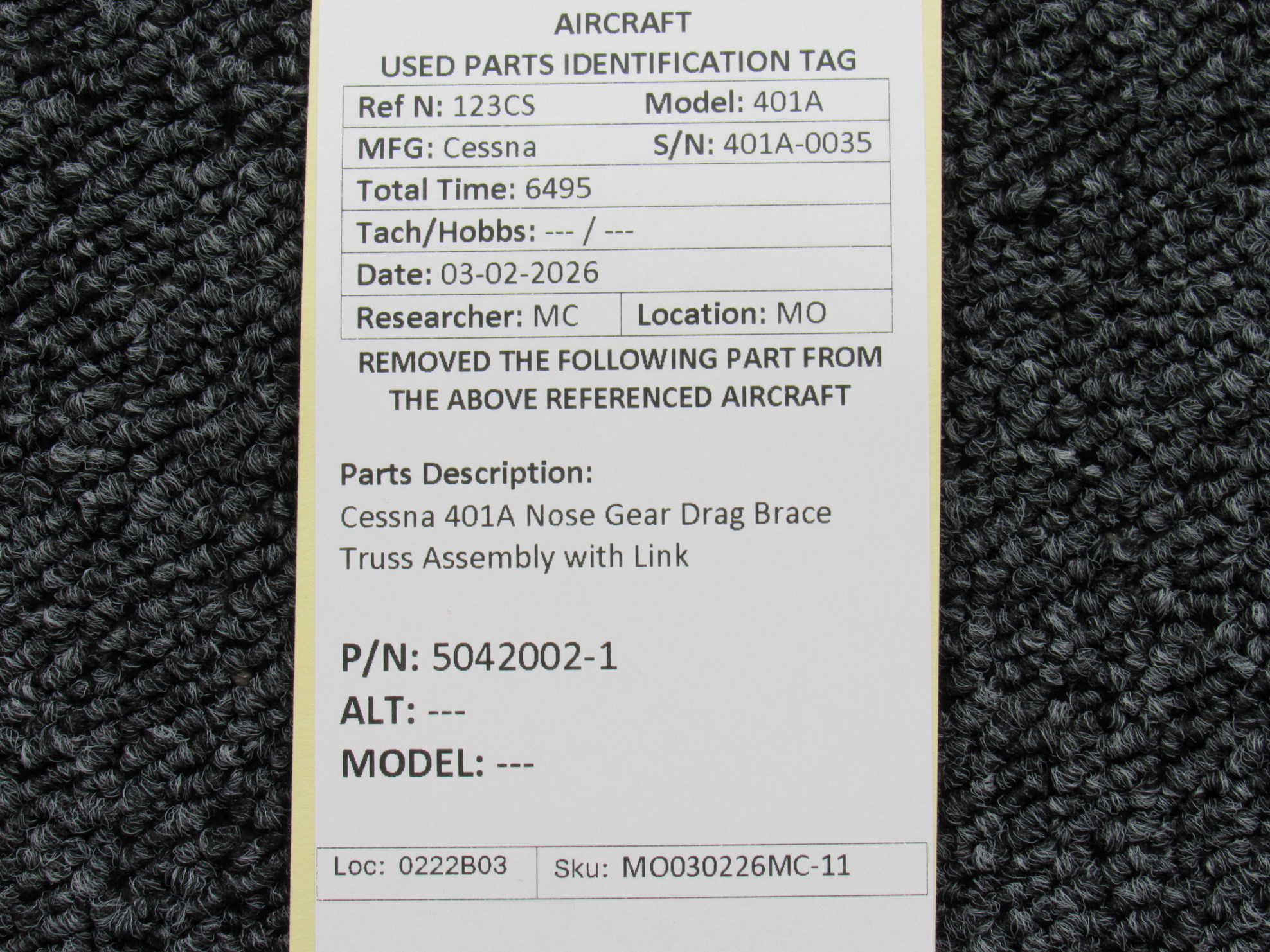 Every part is carefully inspected throughout our process and several times before it goes online. Most items are sold as-removed, just as they came off the aircraft. These parts are not functionally tested. What we do provide is clear photos, full traceability when available, pricing that reflects the as-removed condition, and a no-nonsense 90-day return window.