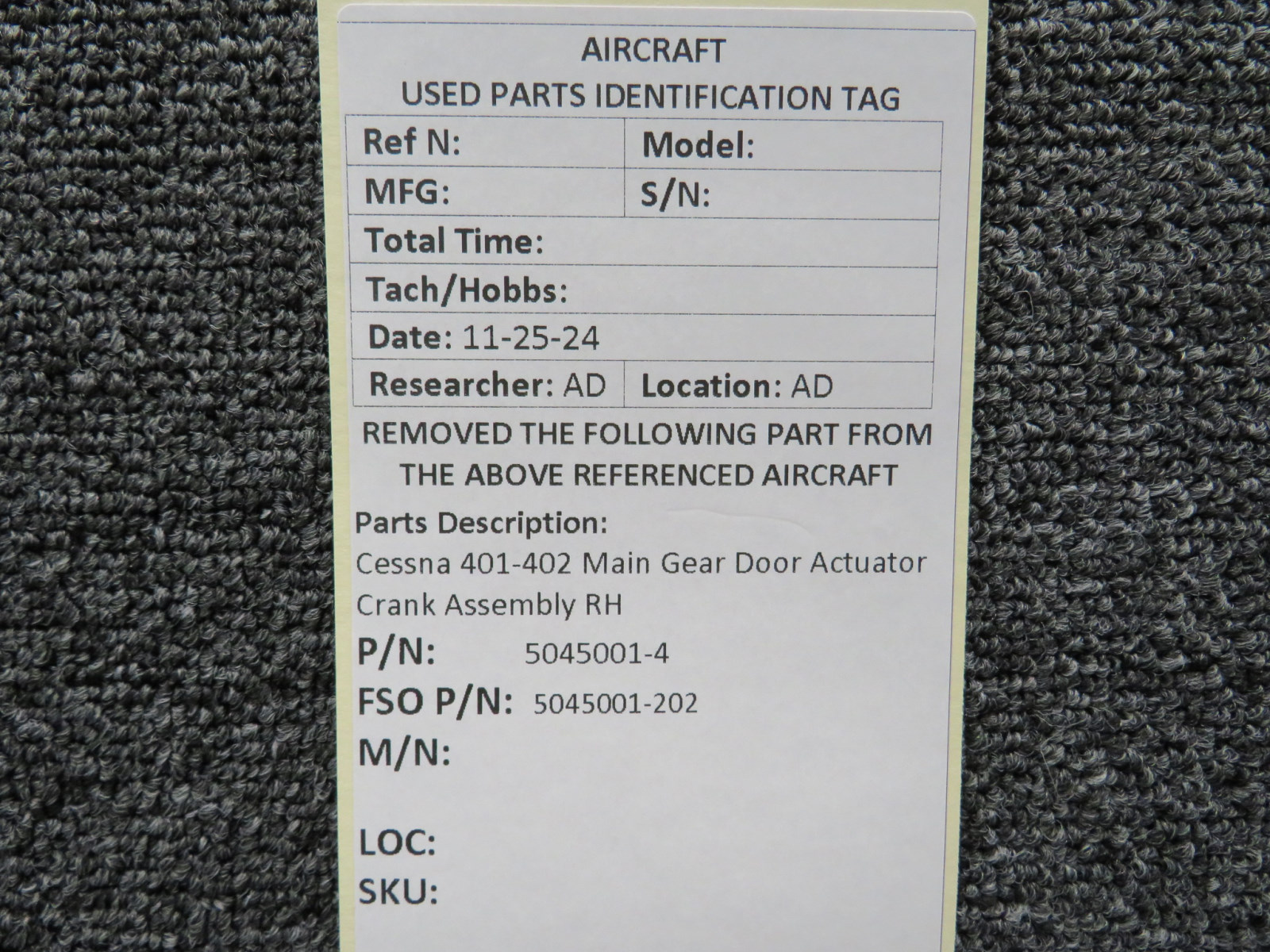 Attention International Buyers: We routinely export aircraft parts to destinations around the world. All import duties, taxes, and any other charges related to importing parts to your country are not included in the price of the item or shipping charges, these are 100% the responsibility of the buyer. Please check with your country's customs office to help determine what these additional costs will be prior to purchasing. We do not mark merchandise value below purchase value nor mark items as "gifts" as both U.S. and international law strictly prohibits this. We do not ship to forwarding shipping stations. A business or residential address is required for delivery.
