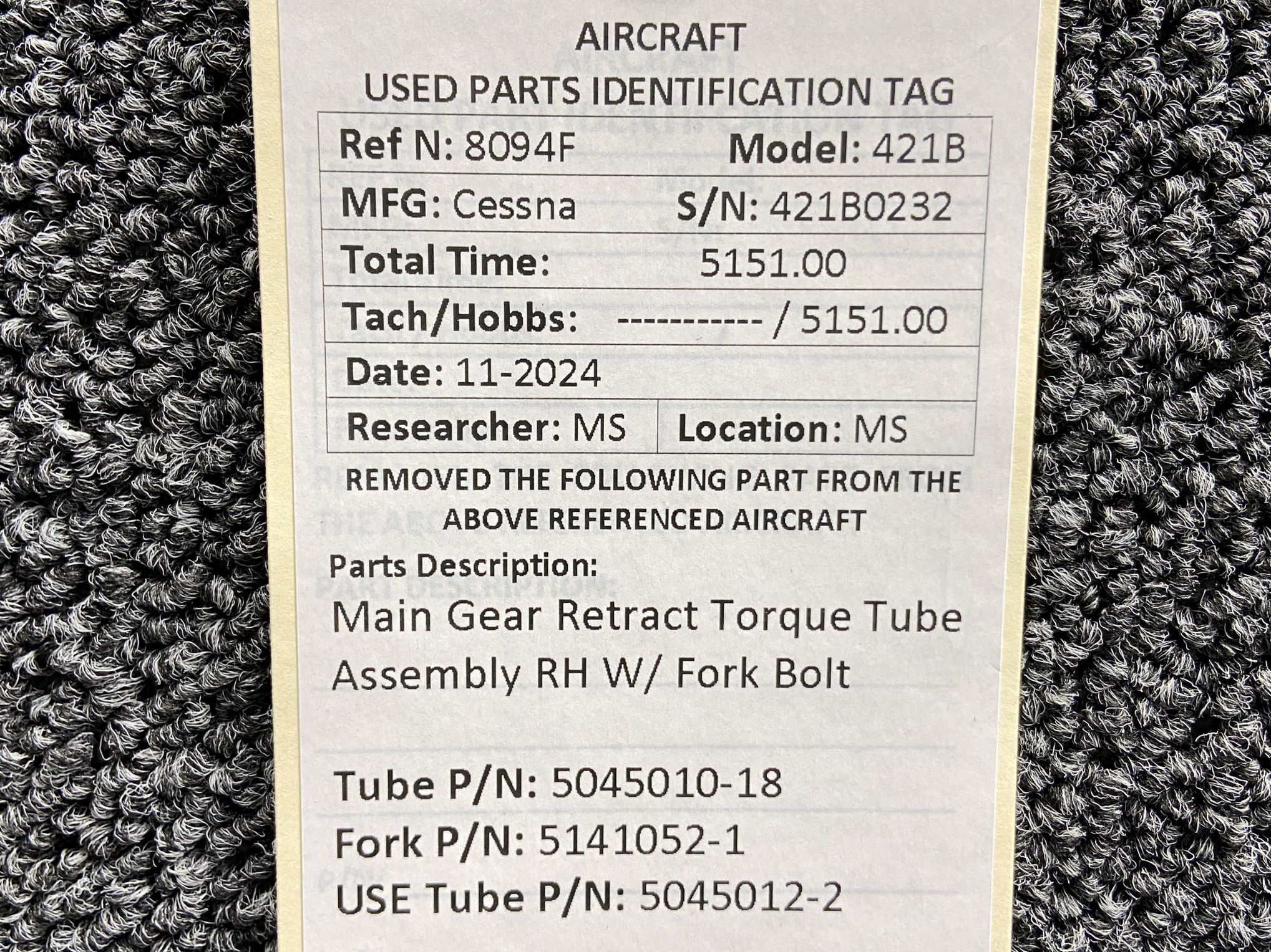 - Torque Tube Part Number: 5045010-18