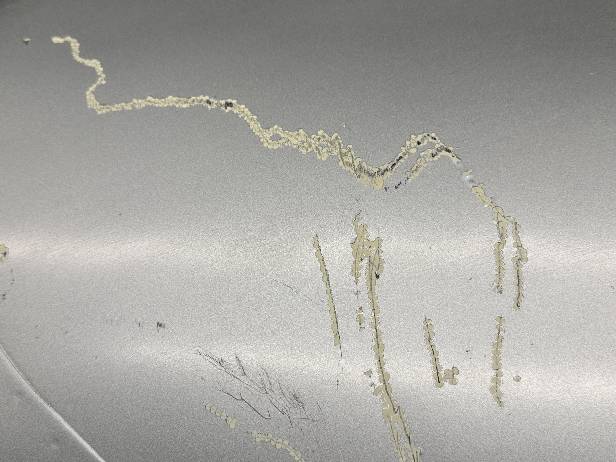 - Dents and scratches along skin