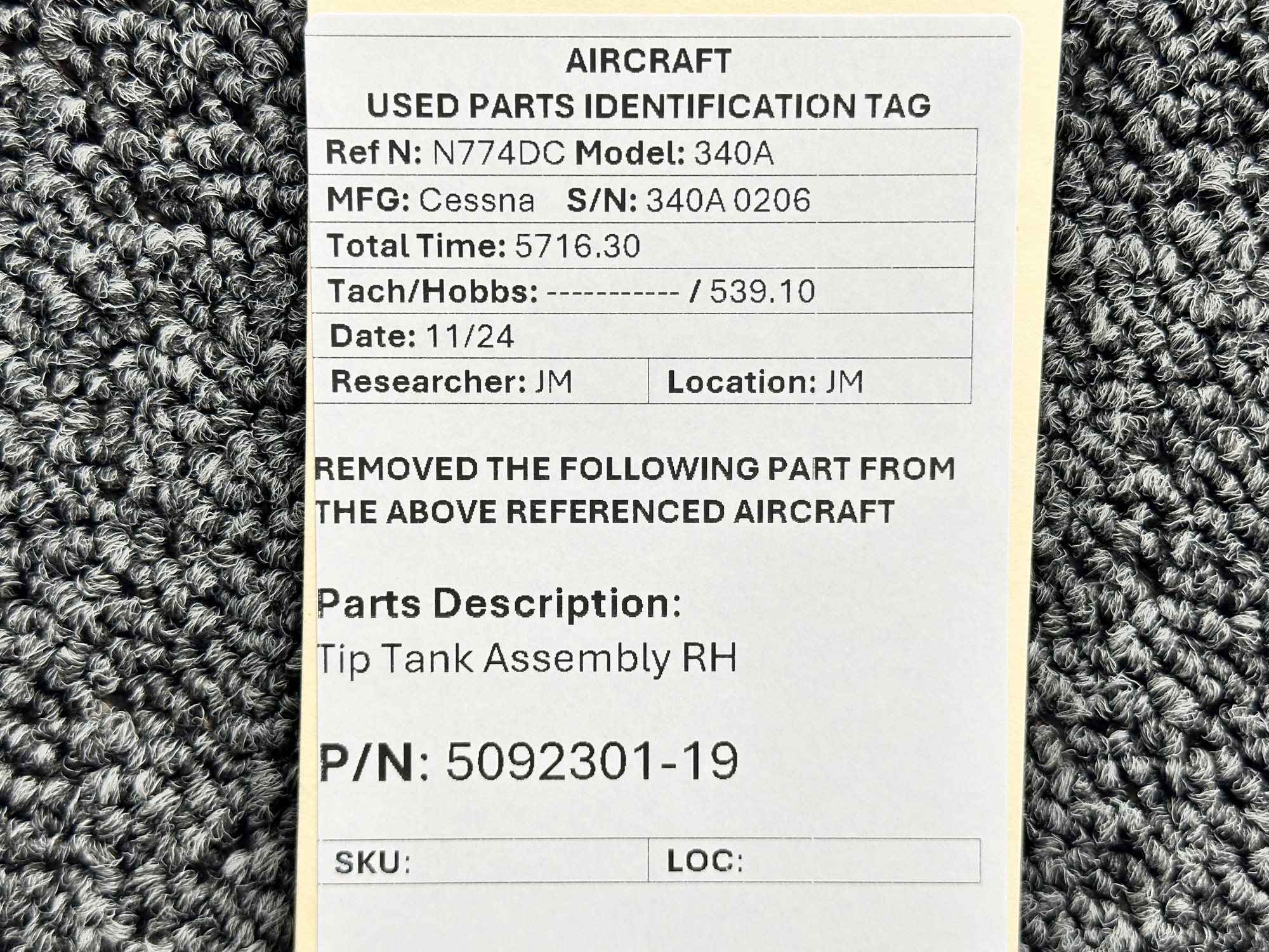 Unless specifically noted, most of our used airplane parts are sold in the condition they were removed, which means you should expect the usual signs of wear and tear.
