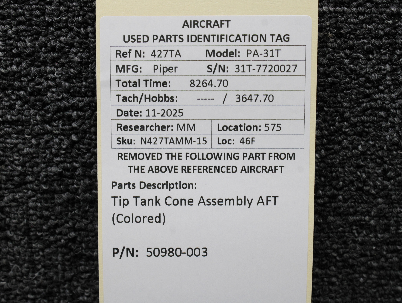 Unless specifically noted, most of our used airplane parts are sold in the condition they were removed, which means you should expect the usual signs of wear and tear.